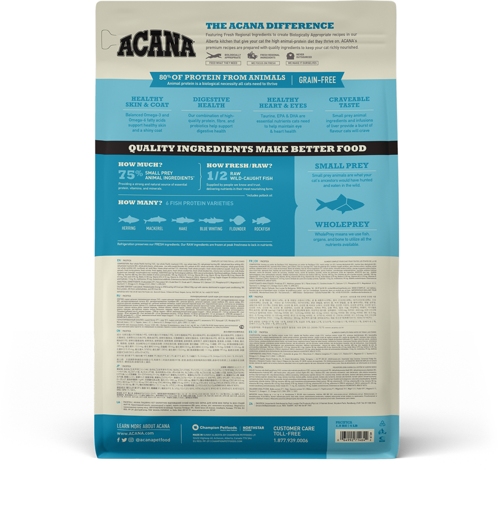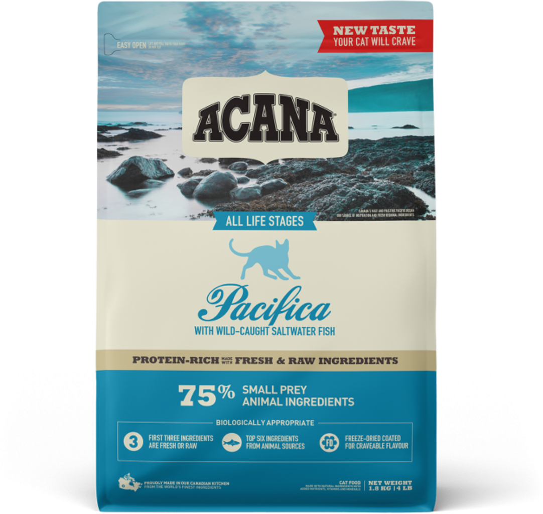 Z ACANA™ Cat Pacifica vaša mačka dobi obrok, ki ni le okusen, ampak je tudi naravno hranljiv – tako kot je zamislila narava.