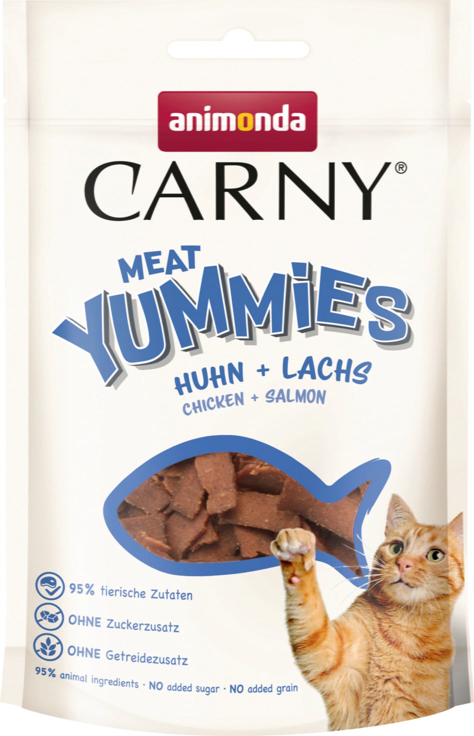 Izkušnenj v jeziku slovenščina za izdelek Animonda Mačji priboljški Carny Meat Yummies - piščanec in losos