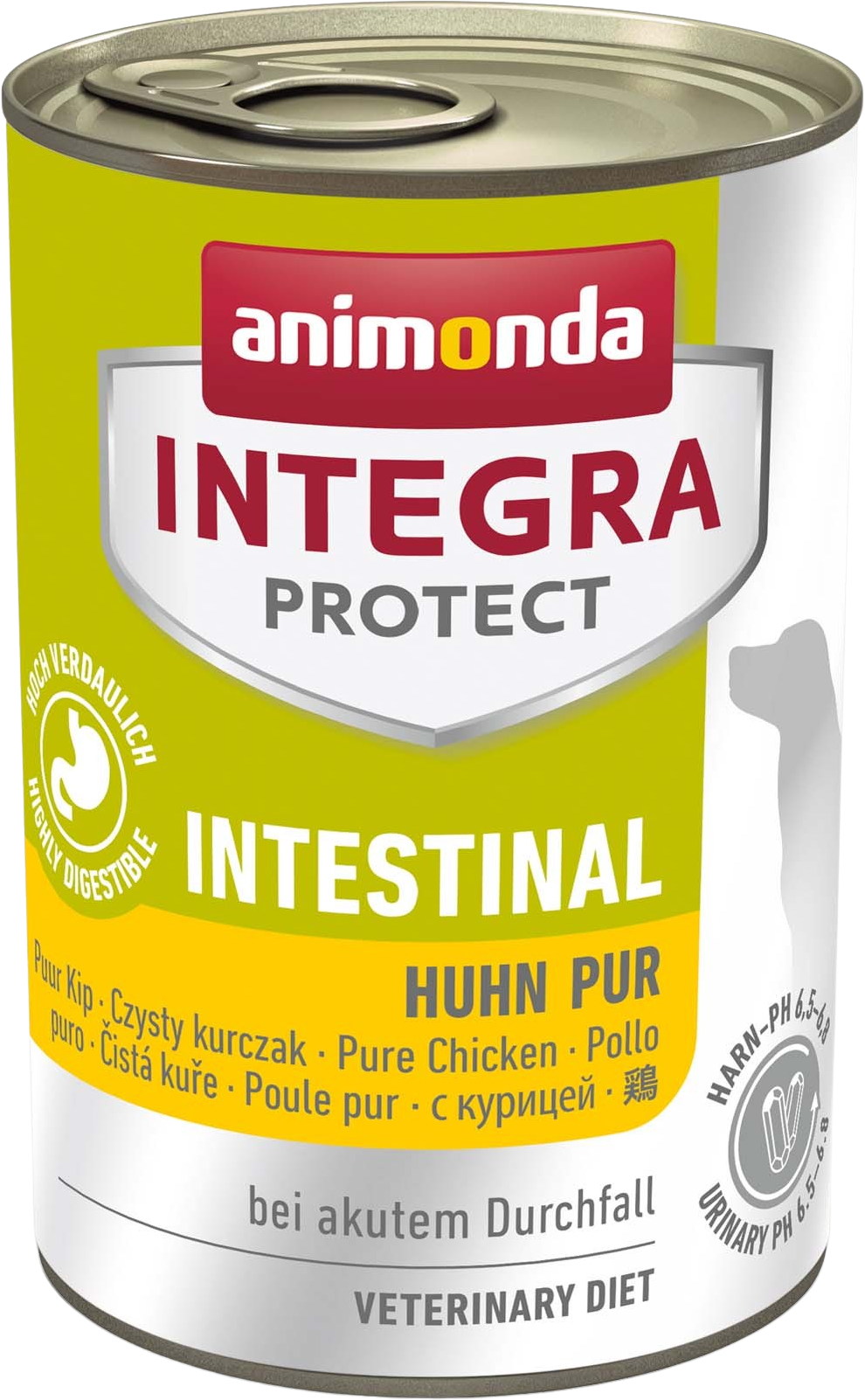 Integra Protect Intestinal je bila razvita posebej za pse z akutno drisko. Visoko prebavljive mesne beljakovine in riž, ki jih psi dobro prenašajo, ščitijo prebavila in omogočajo hitro regeneracijo črevesne flore. Ker pes zaradi driske izgubi velike količine natrija in klorida, vsebuje okusna posebna hrana povečane koncentracije teh elektrolitov.