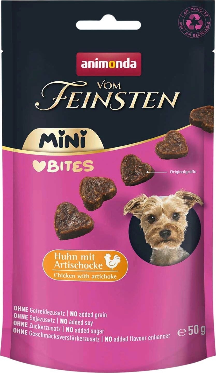 Izkušnenj v jeziku slovenščina za izdelek Animonda Pasji priboljški Vom Feinsten Mini Bites - piščanec z artičoko