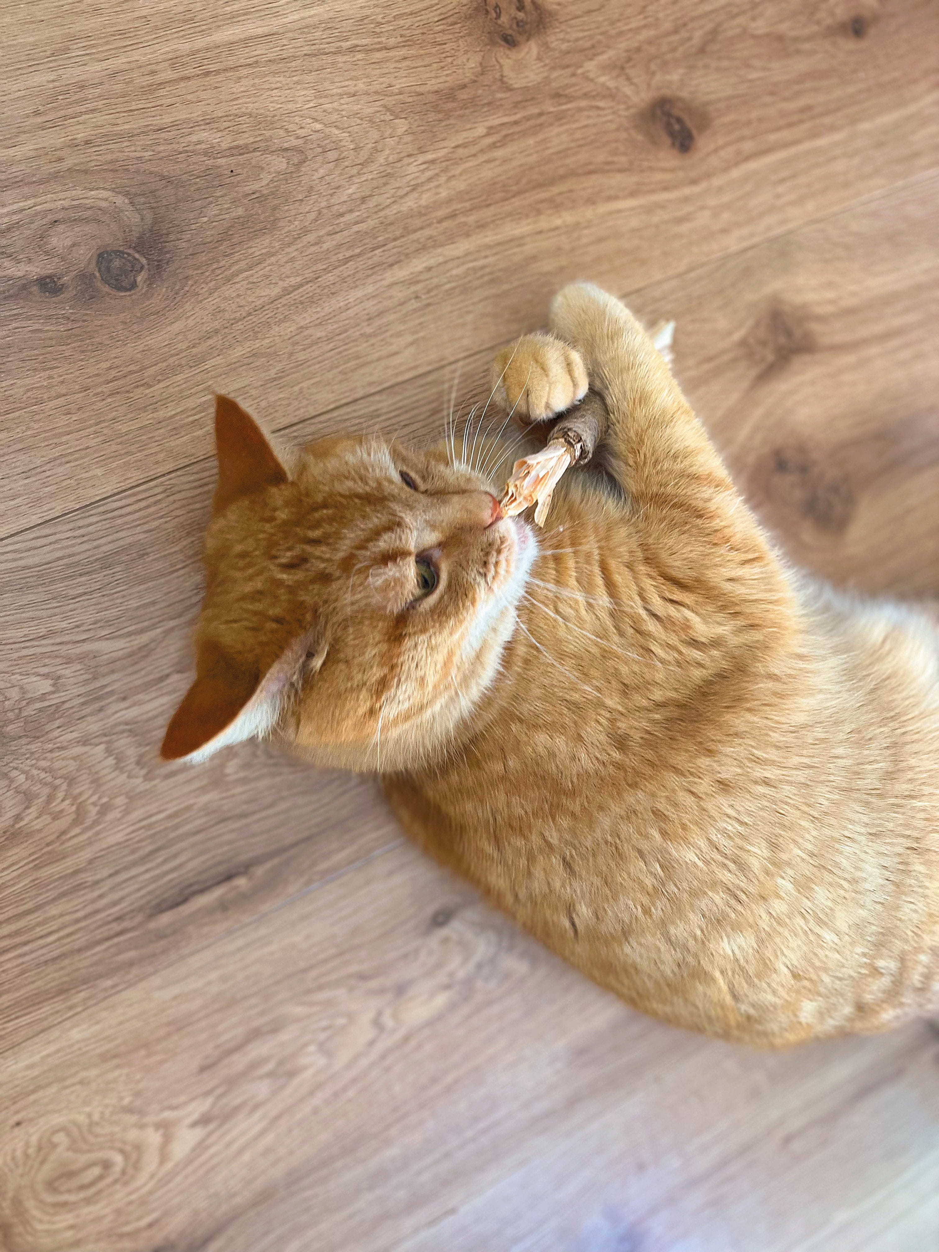 Ta igrača za mačke ne poskrbi le za zabavo, temveč podpira tudi nego zob vašega ljubljenčka. Izdelana je iz 100% naravnih materialov ter dopolnjena z mačjo meto in rastlino silver vine – znano "mačjo rastlino" iz Azije – kar prinaša vrsti primerno popestritev v vsakdan vašega ljubljenčka.
