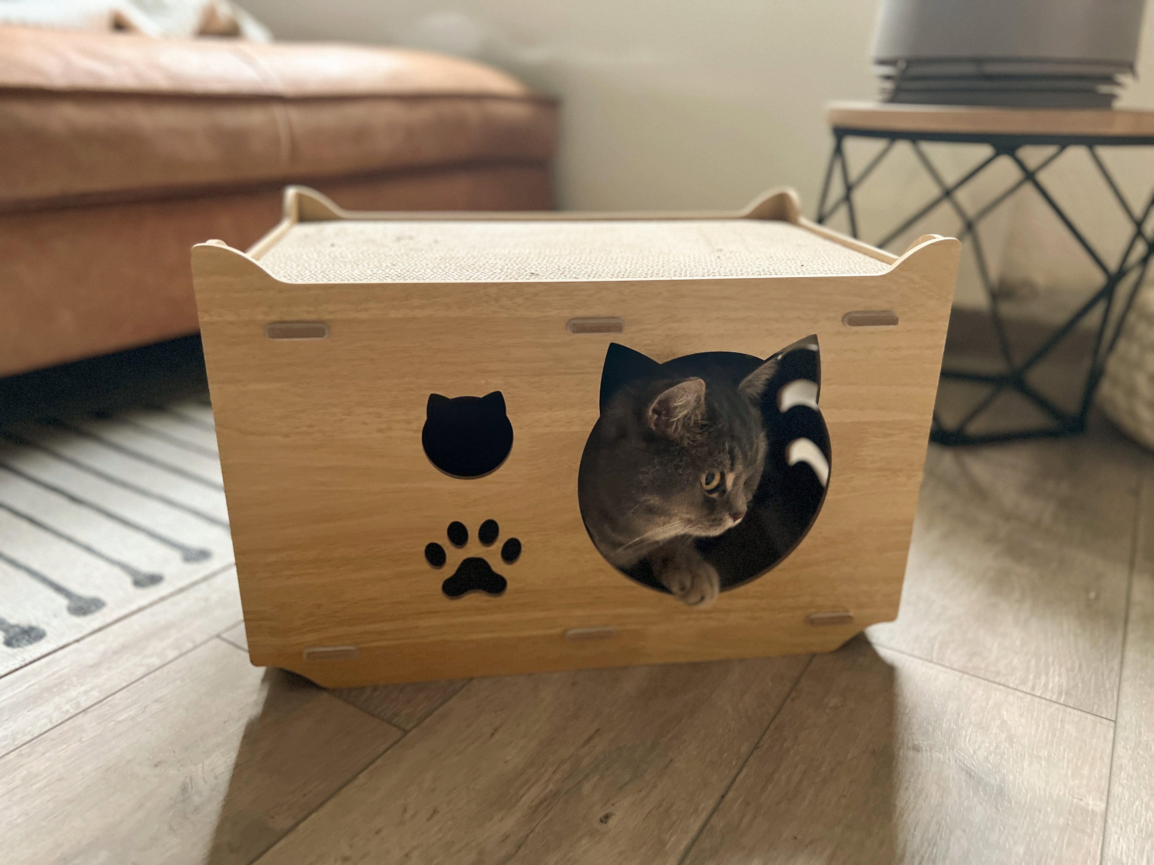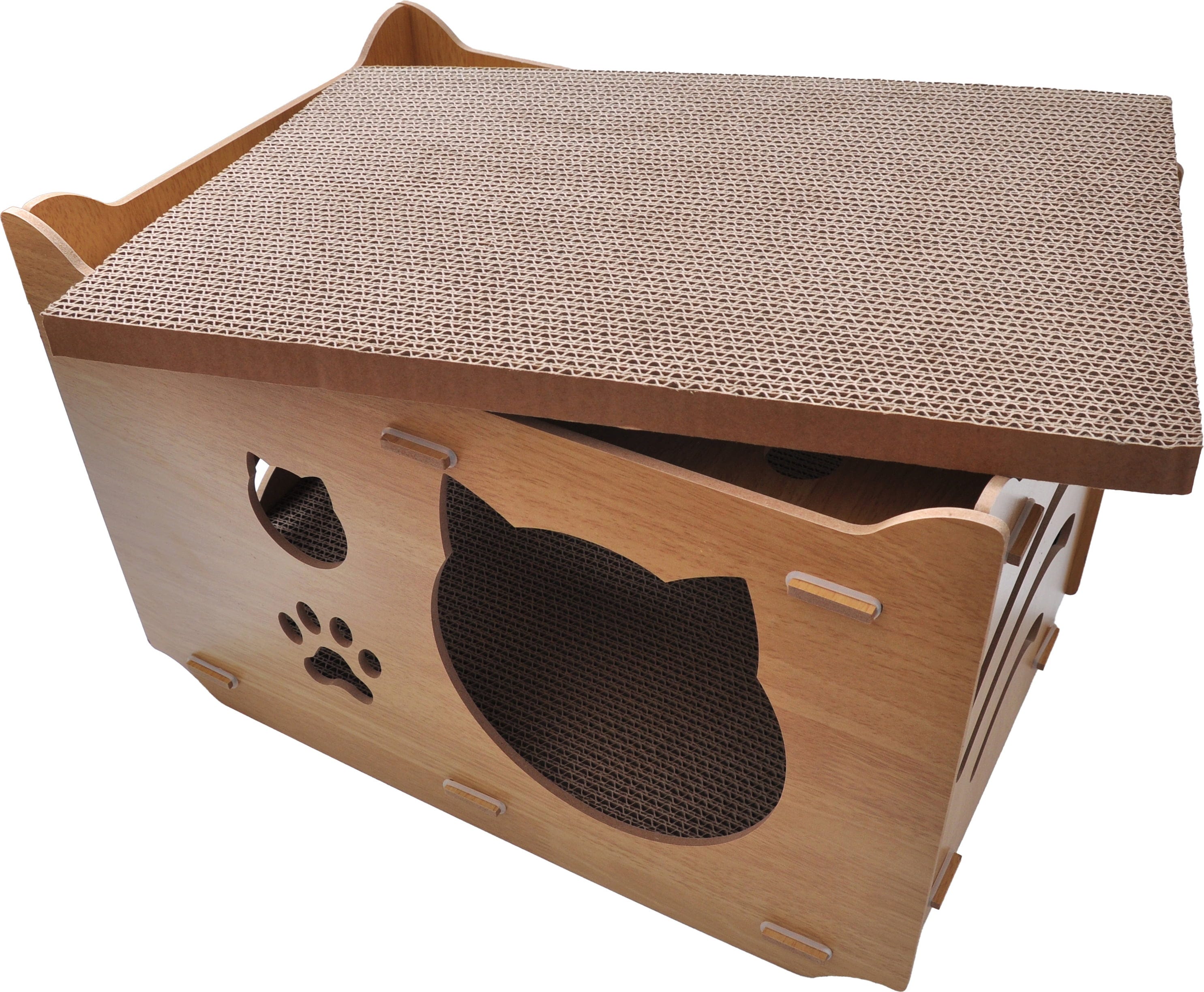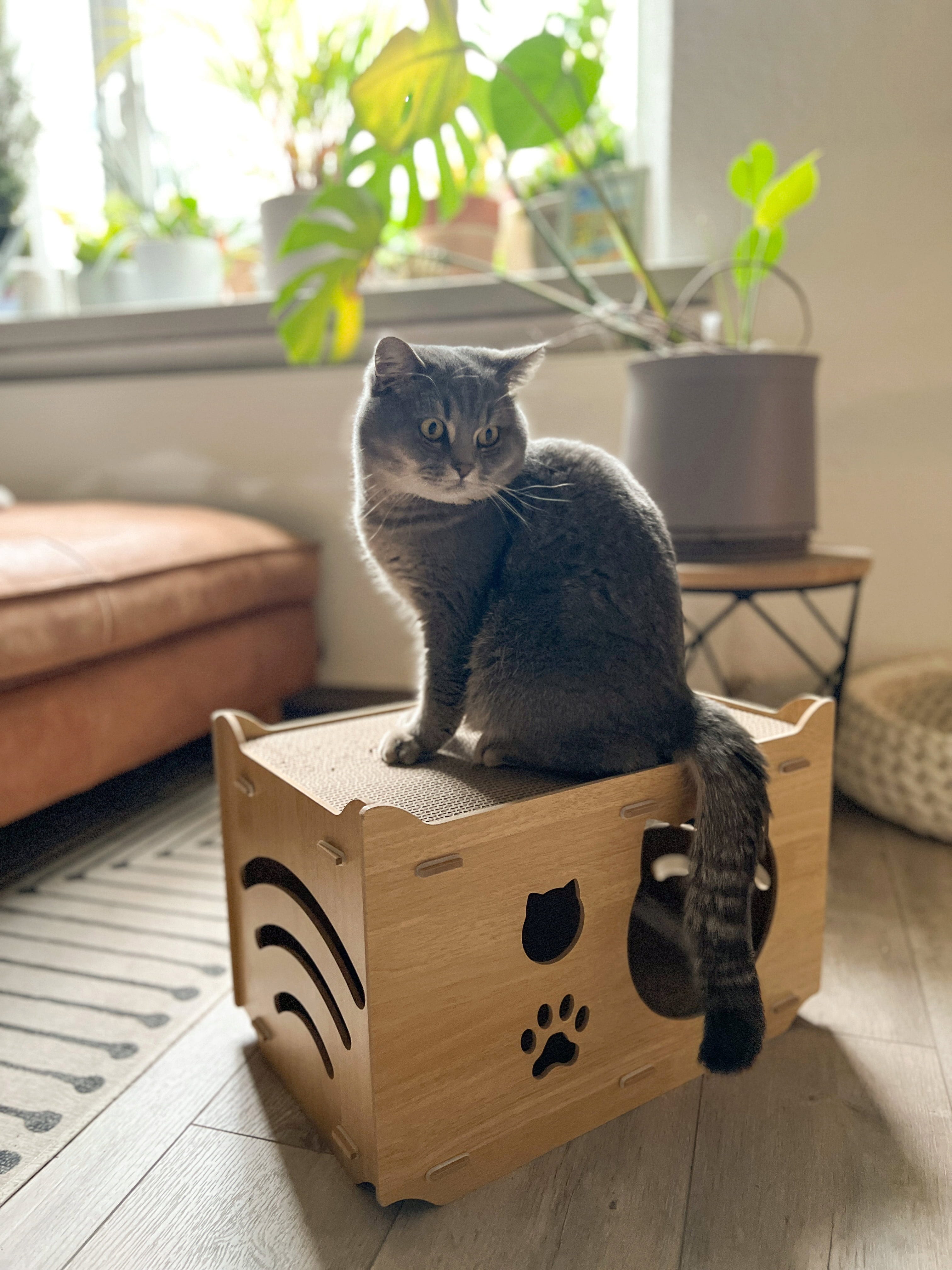 Igra, počitek, brušenje krempljev – vse to je mogoče v tej dekorativni mačji hišici. Izseki na obeh straneh zagotavljajo optimalno zračenje, zato se vaša mačka počuti popolnoma udobno in lahko v celoti uživa v zasluženem počitku.