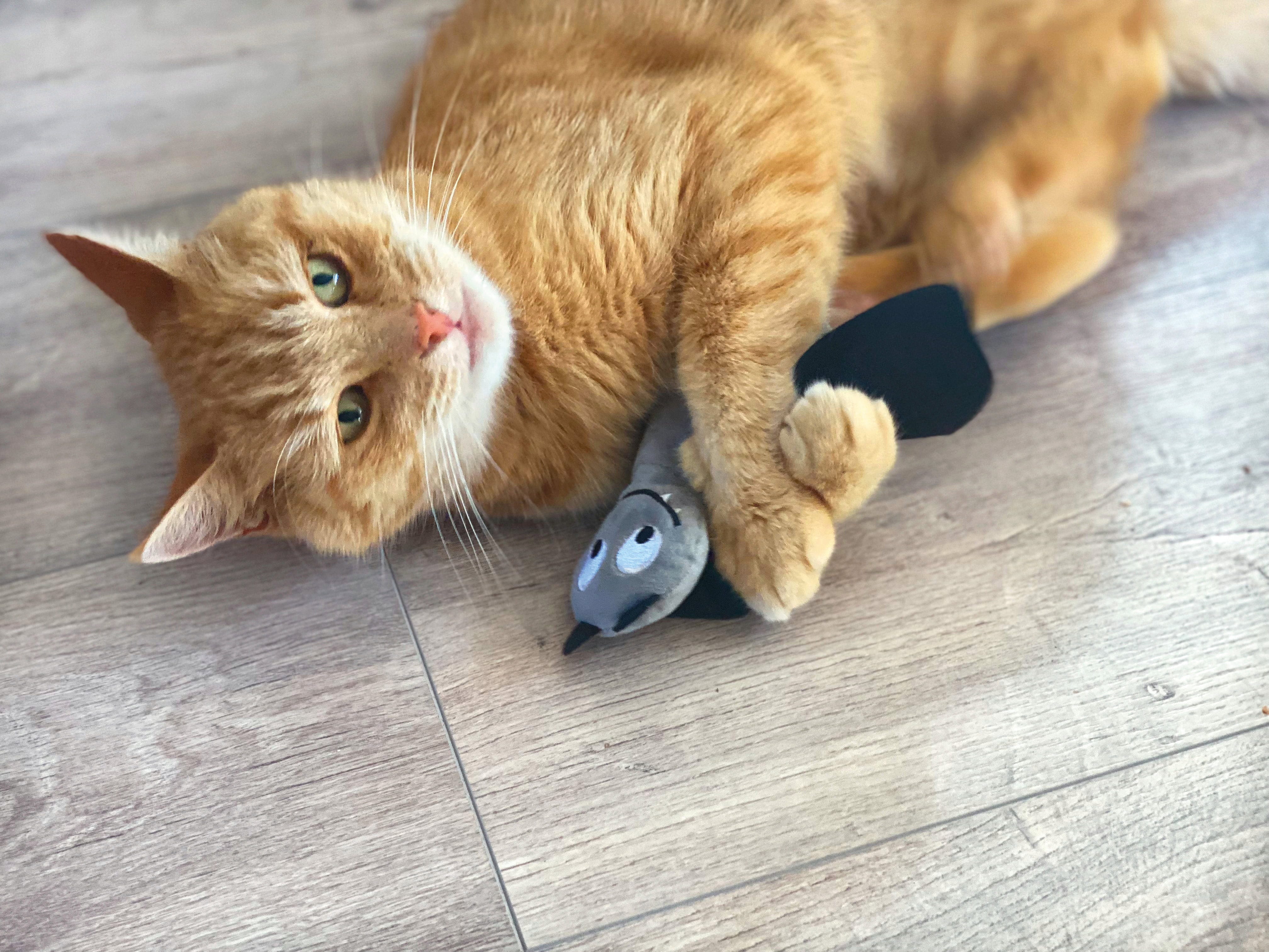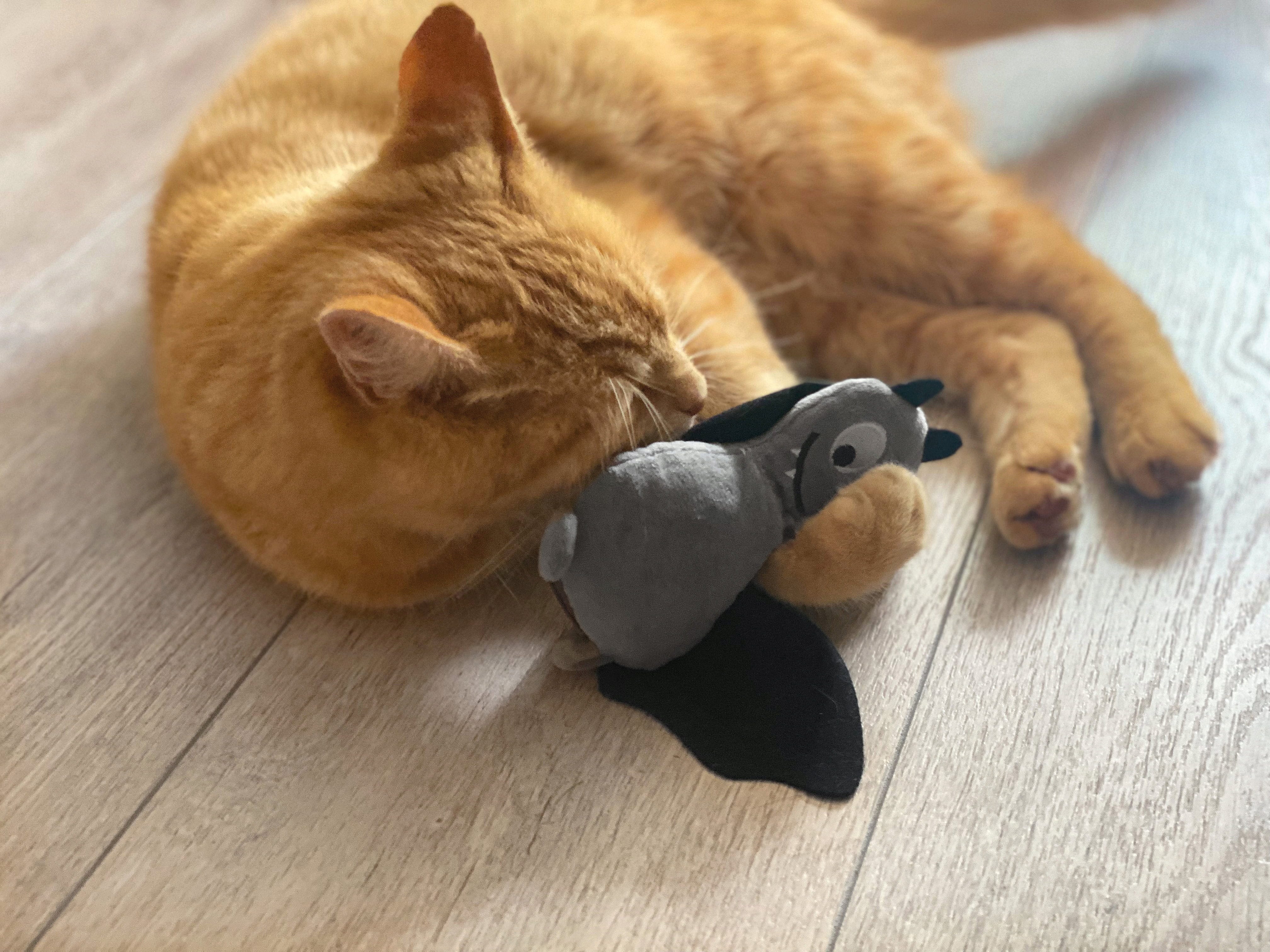 Netopir Frido ne navdušuje le s svojo prikupno obliko, temveč tudi s svojo vsebino: polnilo iz pirinih luščin in korenine baldrijana ga naredi preprosto neustavljivega za igrive mačke.