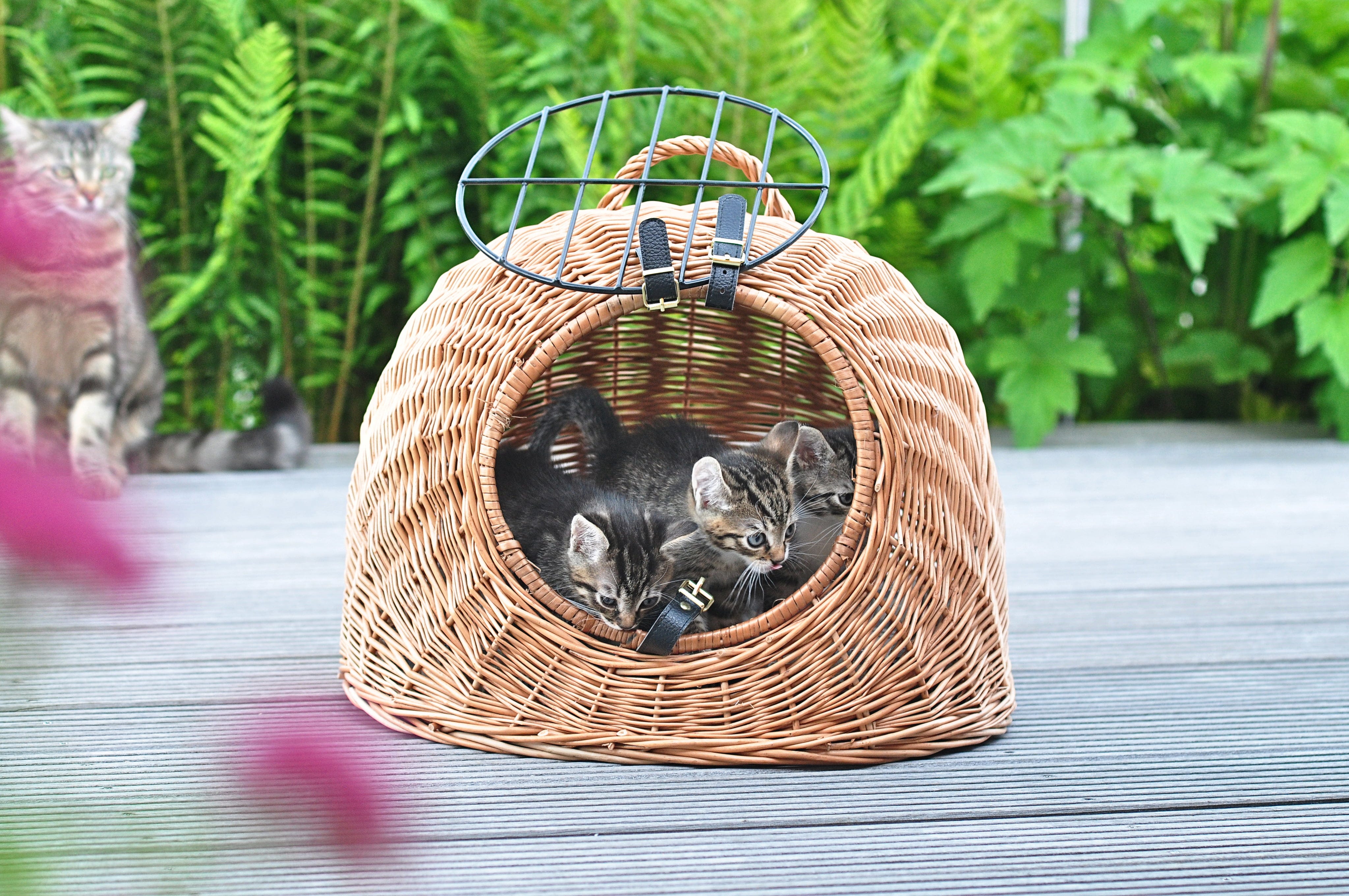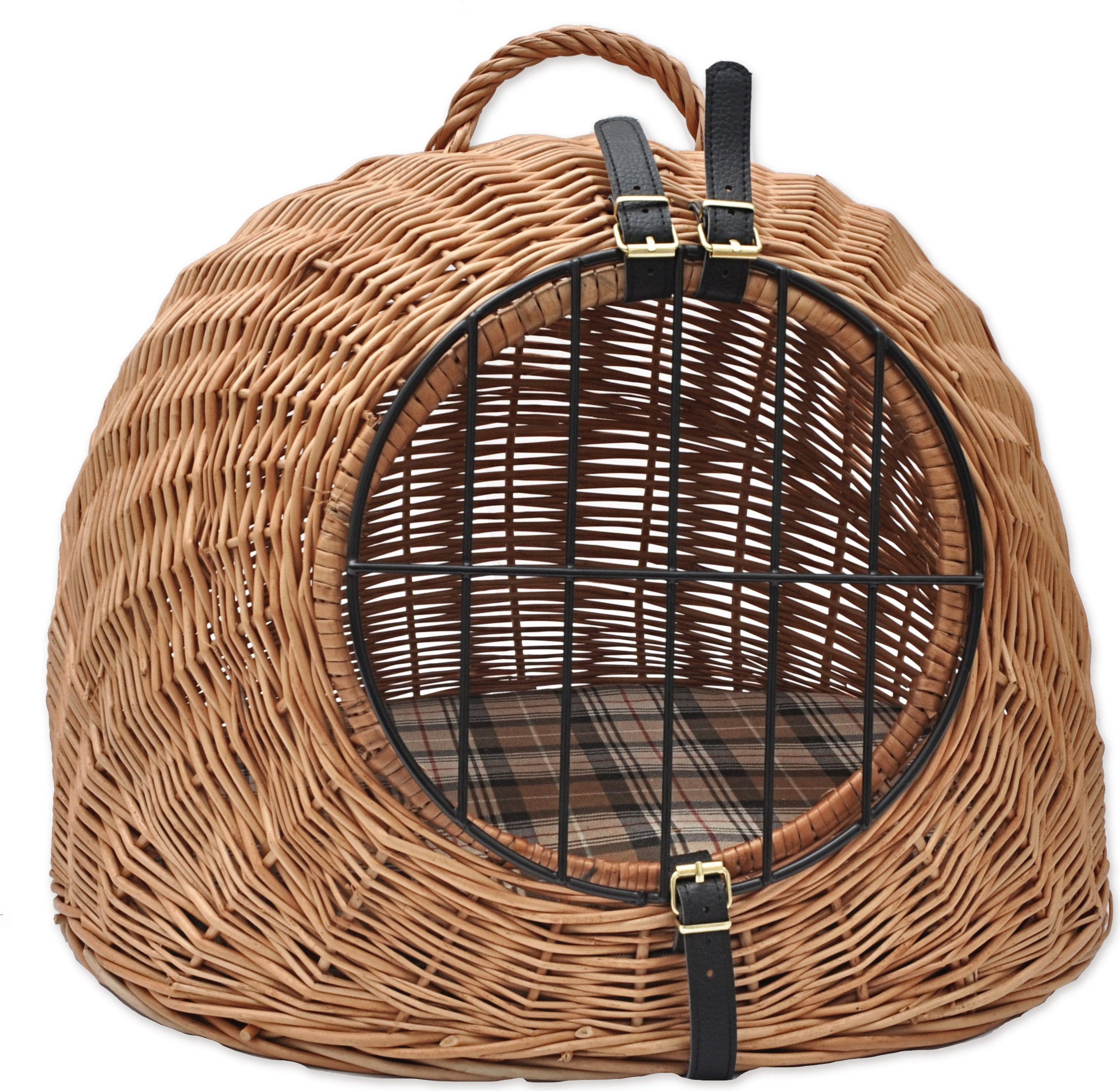 Ne glede na to, ali ste doma, na poti k veterinarju ali pa na daljšem potovanju, ta visokokakovostna košara vaši mački vedno nudi varno zatočišče. Mrežasta vrata lahko popolnoma odstranite, zato se transportna košara v nekaj korakih spremeni v udobno votlino. Bogata ročna izdelava iz kuhane vrbe vas bo navdušila tako s svojim elegantnim videzom kot tudi z izjemno visoko kakovostjo.