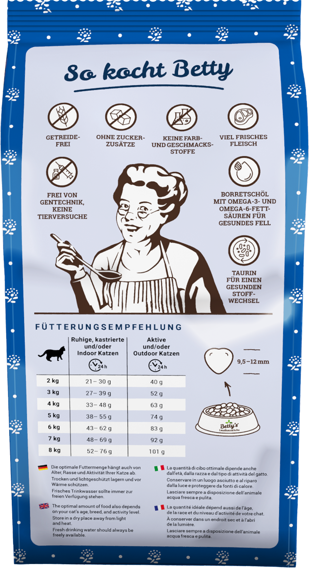 Izkušnenj v jeziku slovenščina za izdelek Betty's Landhausküche Suha mačja hrana Adult - piščanec in postrv