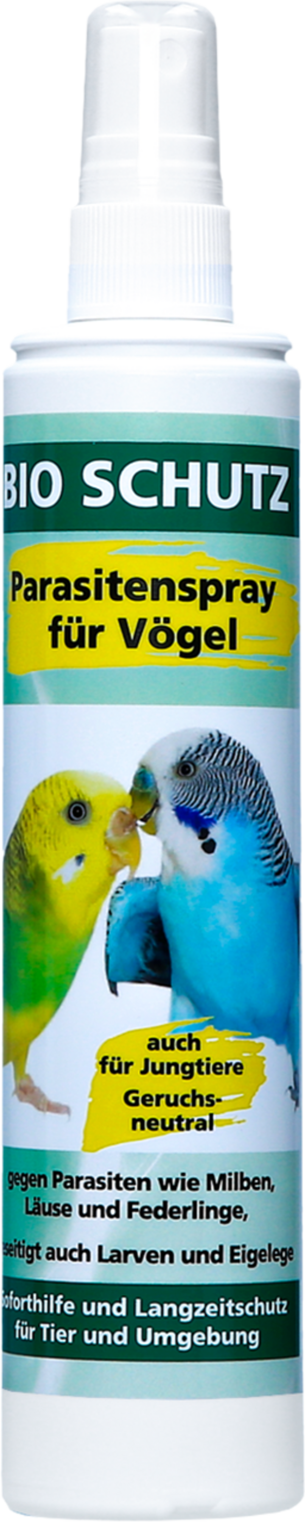 Ta izdelek je sprej proti zajedavcem za velike in majhne vrste ptic. Ščiti živali in njihovo okolje pred okužbo s zajedavci, kot so pršice, uši in številne druge vrste, pa tudi pred njihovimi potomci. Sprej zanesljivo in hitro uniči tudi obstoječe škodljivce. Izdelek je brez vonja in primeren za uporabo pri mladih pticah.