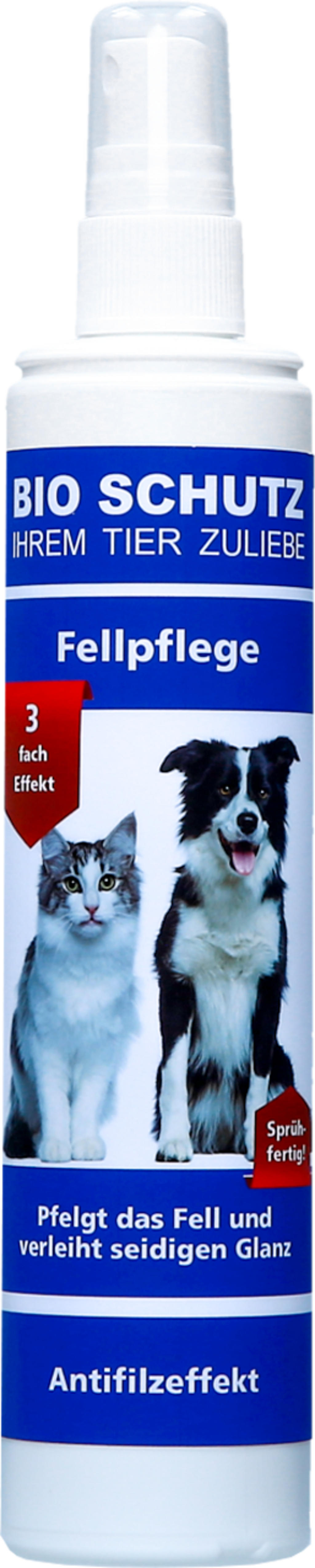 Ta sprej za nego dlake znamke Bio Schutz ima trojni učinek: dlaka je razvozlana, svilnatega sijaja in negovana.