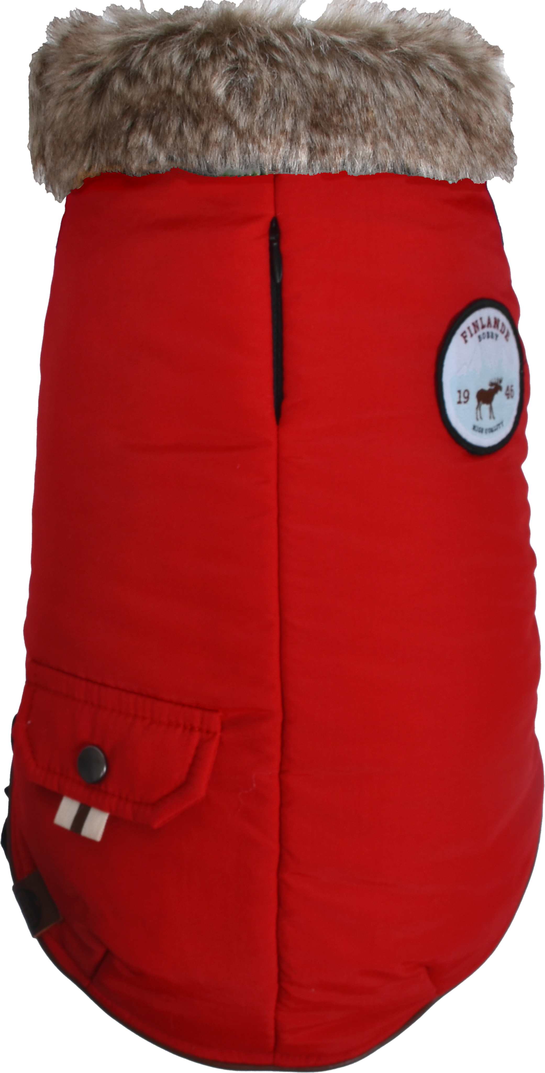 Izkušnenj v jeziku slovenščina za izdelek Bobby Podložena pasja jakna Finlande, rdeča