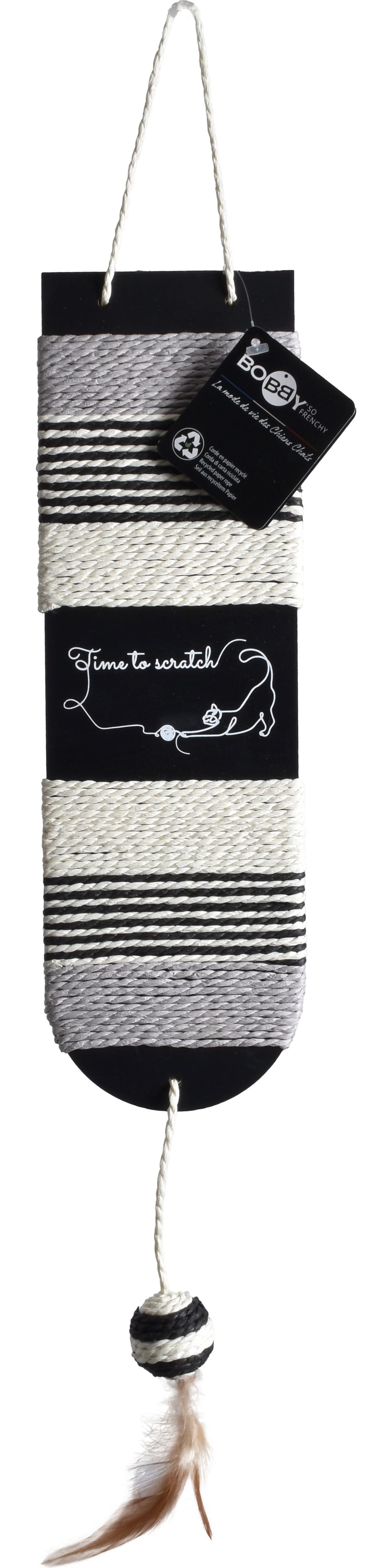 Ta praskalna deska ne bo navdušila le vaše mačke, ampak tudi vas. Preprosto jo obesite na primerno mesto in uživajte v njenem privlačnem videzu, medtem ko si vaša mačka brusi kremplje. Še posebej zabavna lastnost: integrirana kroglica s peresom zagotavlja dodatno zabavo.