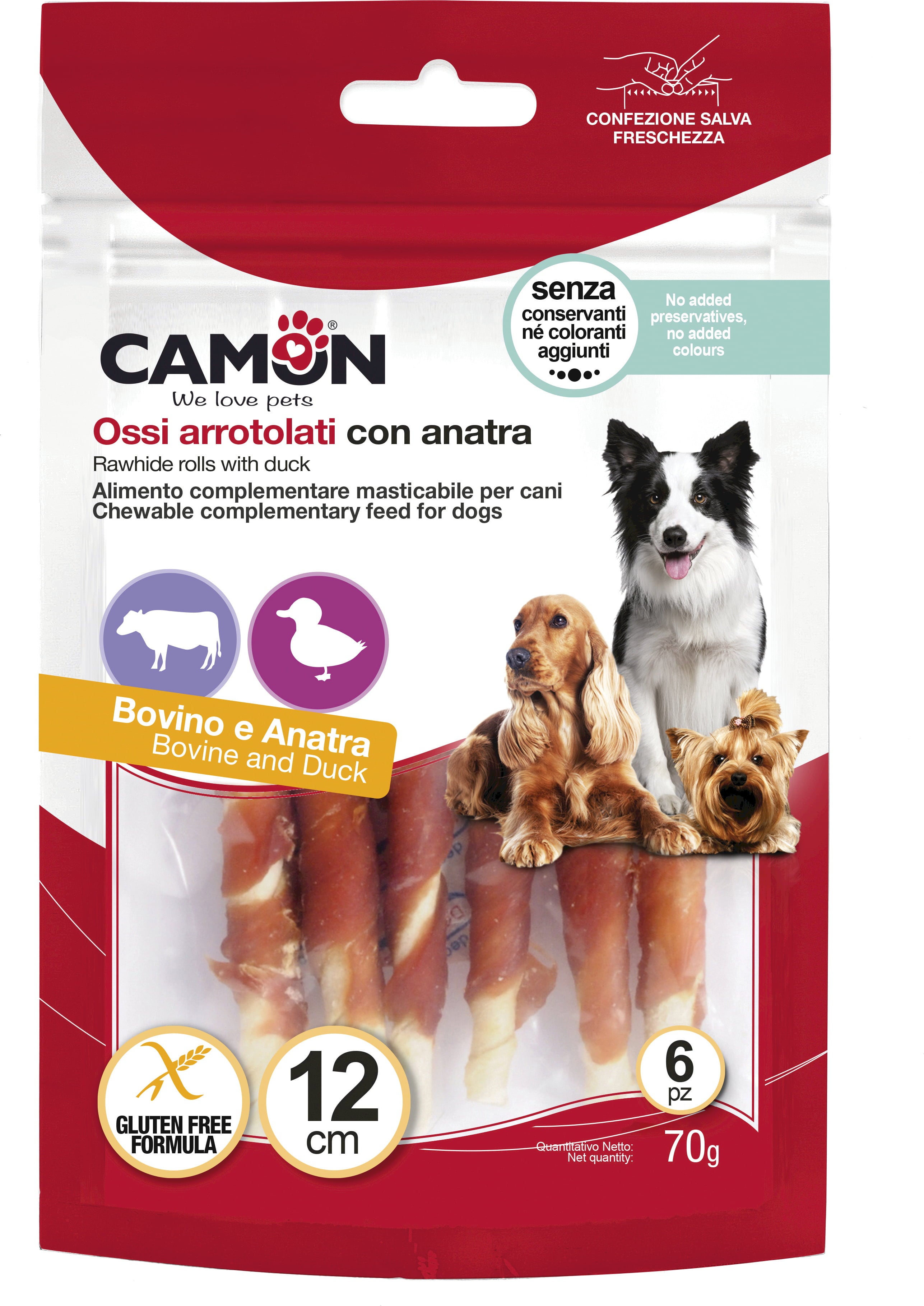 Camon Goveji žvečljivi zvitki z raco, 6 kosov 12 cm (70 g)