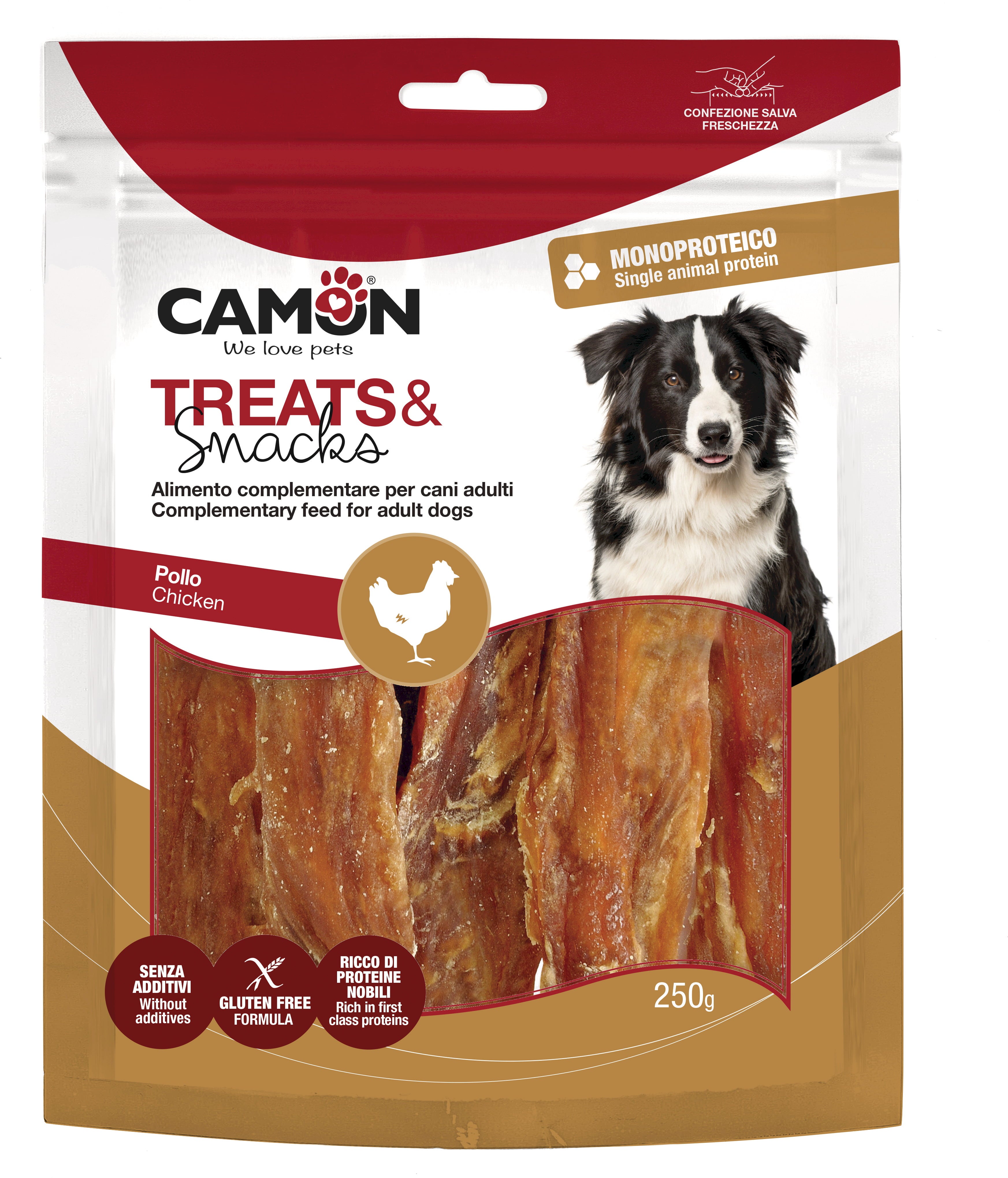 Ti hrustljavi piščančji trakovi ponujajo popolno žvečilno izkušnjo in so prav posebna poslastica za vašega štirinožnega prijatelja.