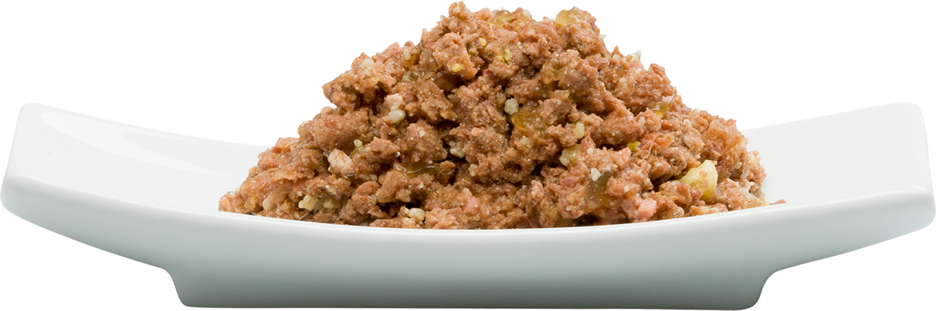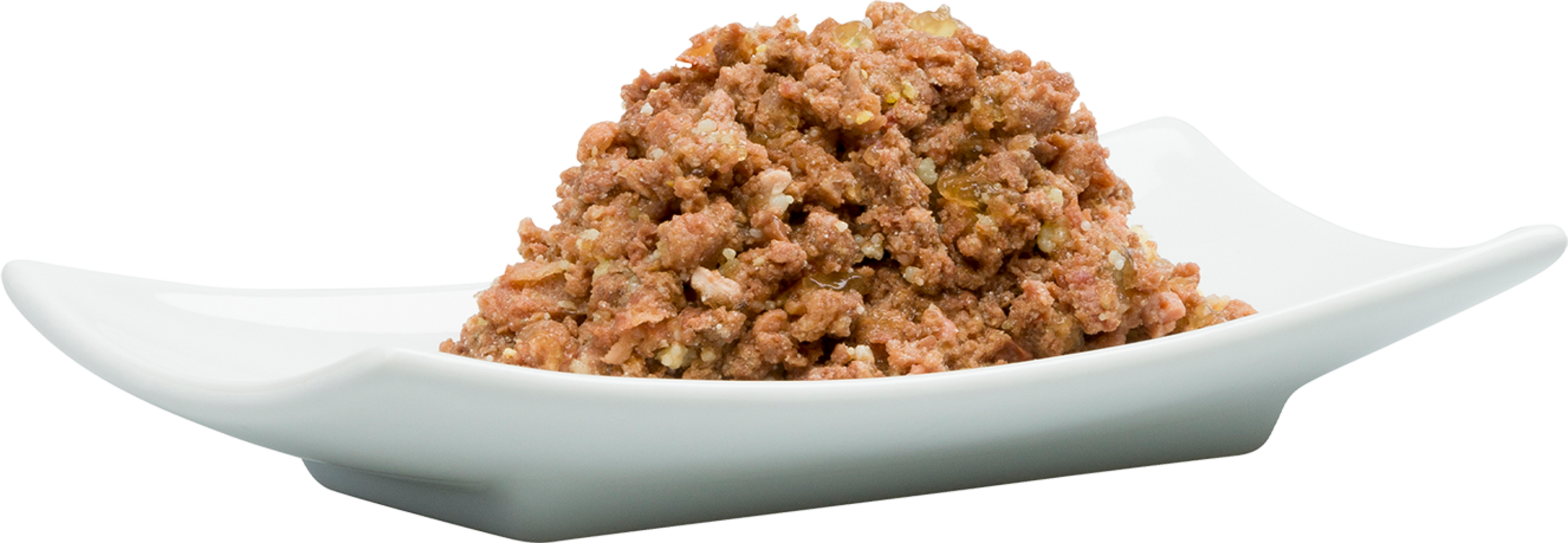 - Več kot 95 % mesa, rib, morskih sadežev, drobovine in jušne osnove, dopolnjene z zelenjavo, sadjem, zelišči in dragocenimi olji, saj ustreza vsebini želodca plena.