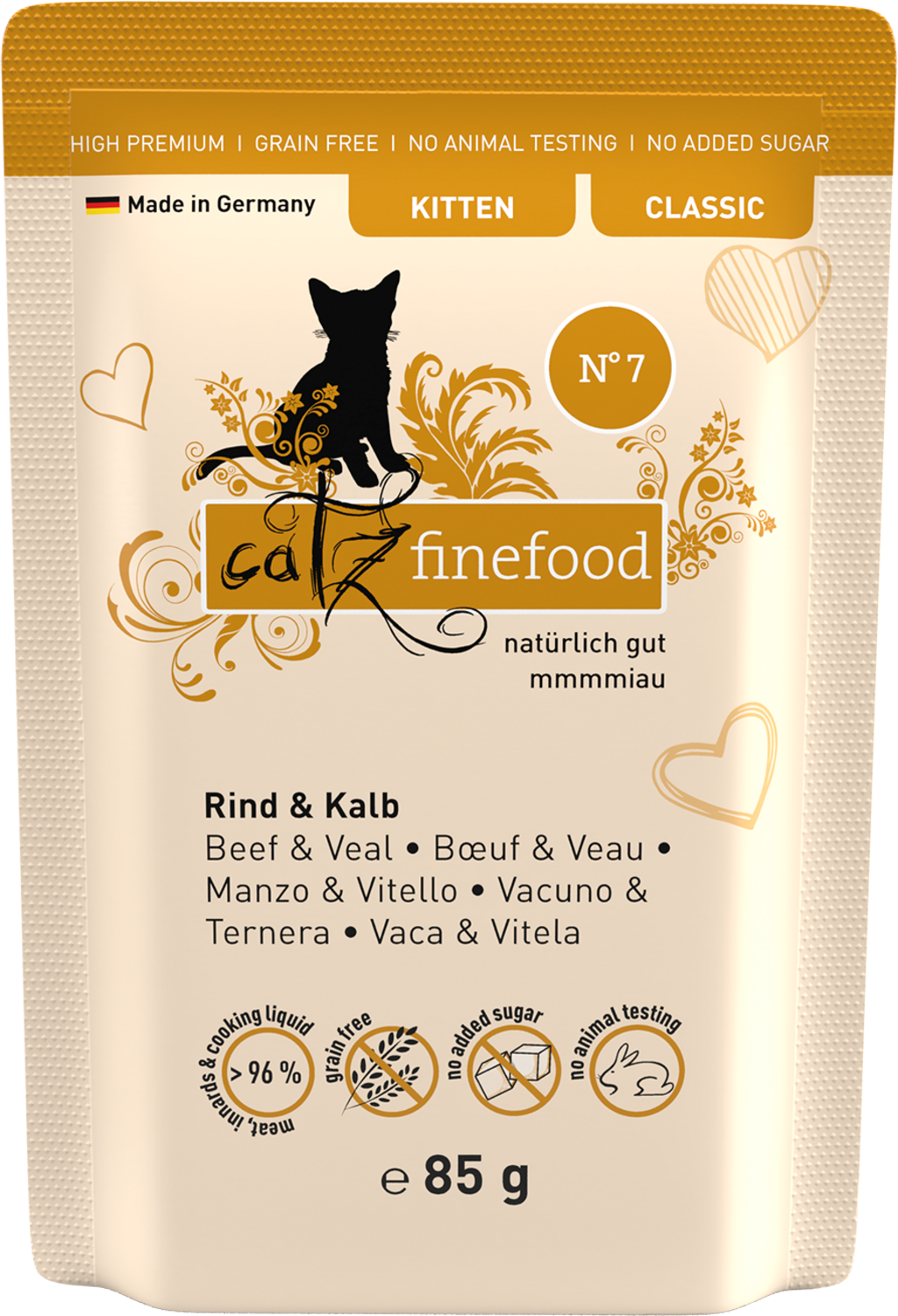 catz finefood Mačja hrana Classic Kitten No.07 - govedina in teletina, 85 g