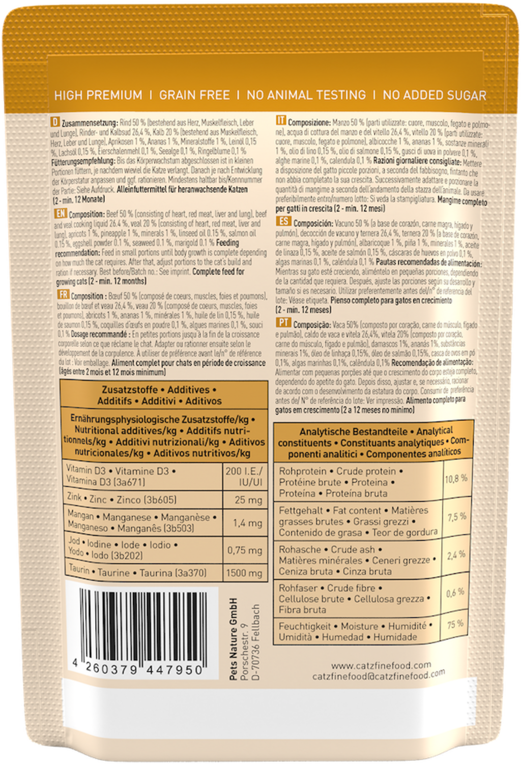 Izkušnenj v jeziku slovenščina za izdelek catz finefood Mačja hrana Classic Kitten No.07 - govedina in teletina
