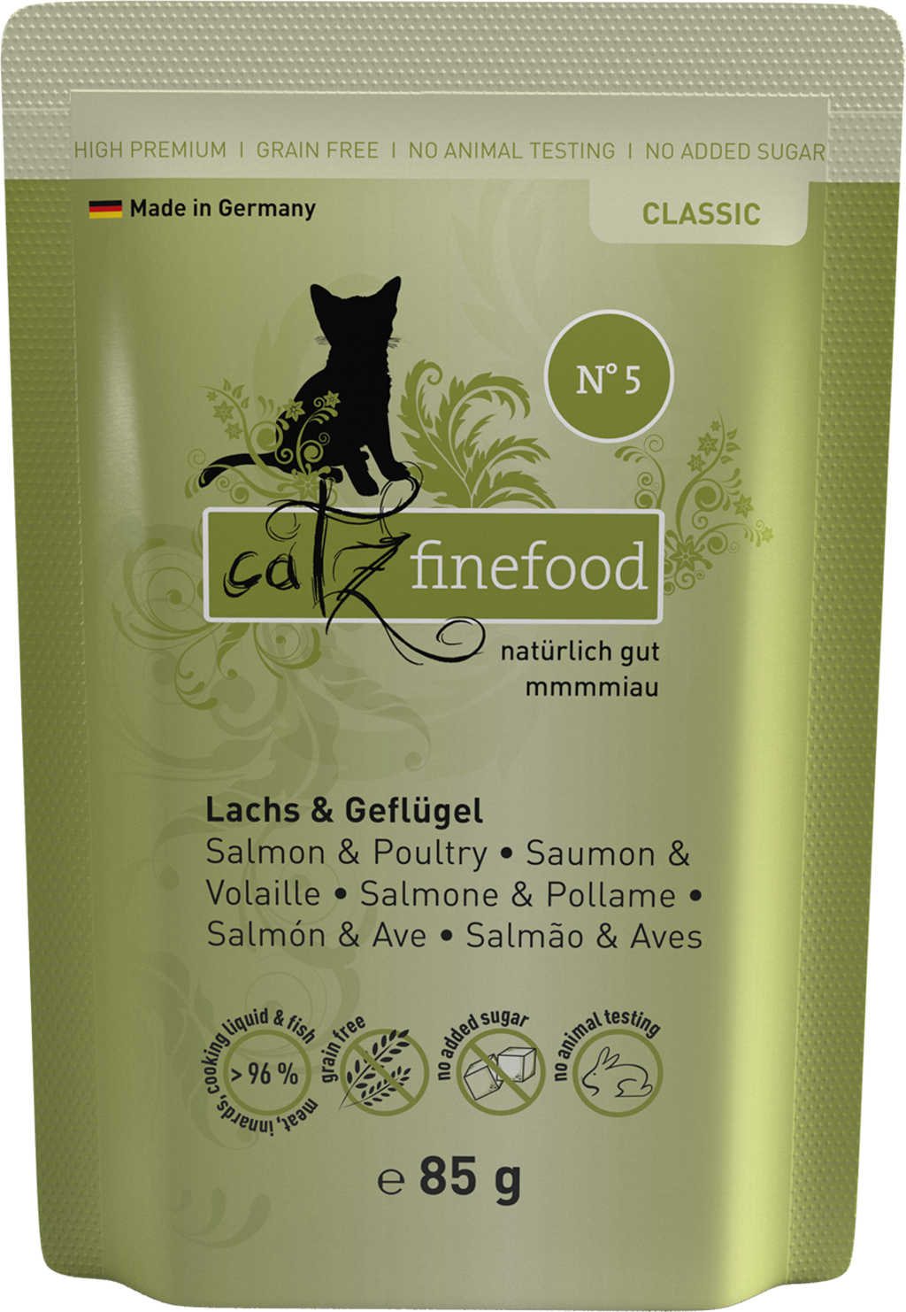 catz finefood Mačja hrana Classic No. 05 - losos in perutnina, vrečka, 85 g