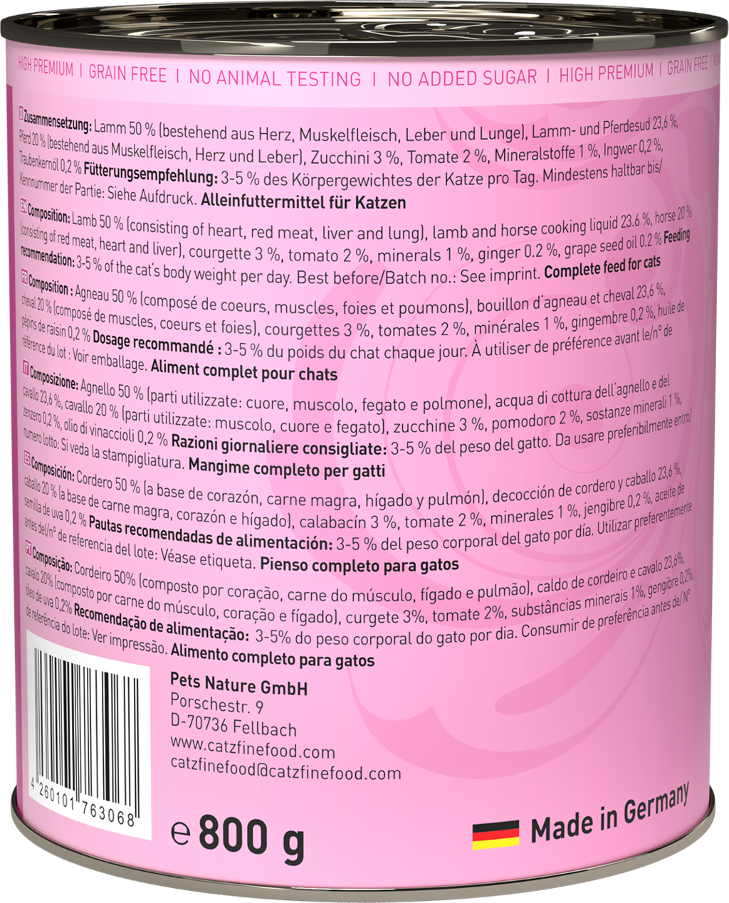 catz finefood Mačja hrana Classic No. 19 - jagnjetina in konj, 800 g