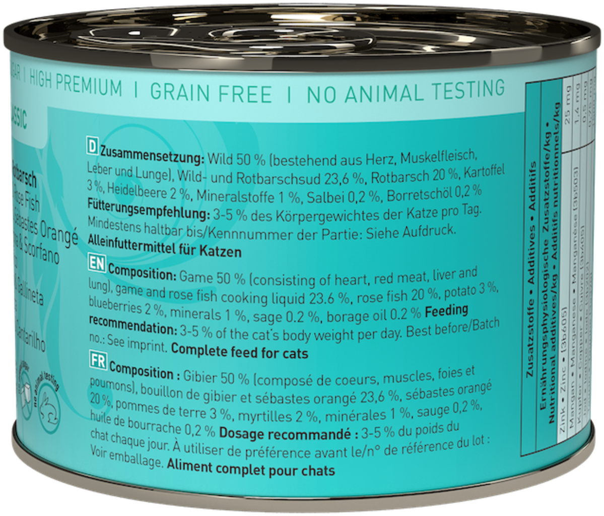 catz finefood Mačja hrana Classic No. 21 - divjačina in rdeči okun, 200 g