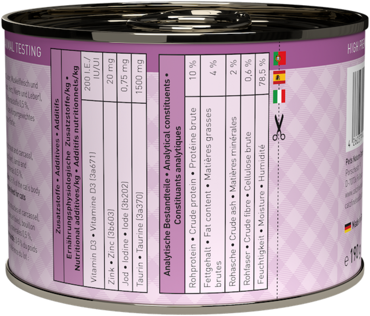 Izkušnenj v jeziku slovenščina za izdelek catz finefood Mačja hrana Ragout No. 611 - jagnjetina in kamela