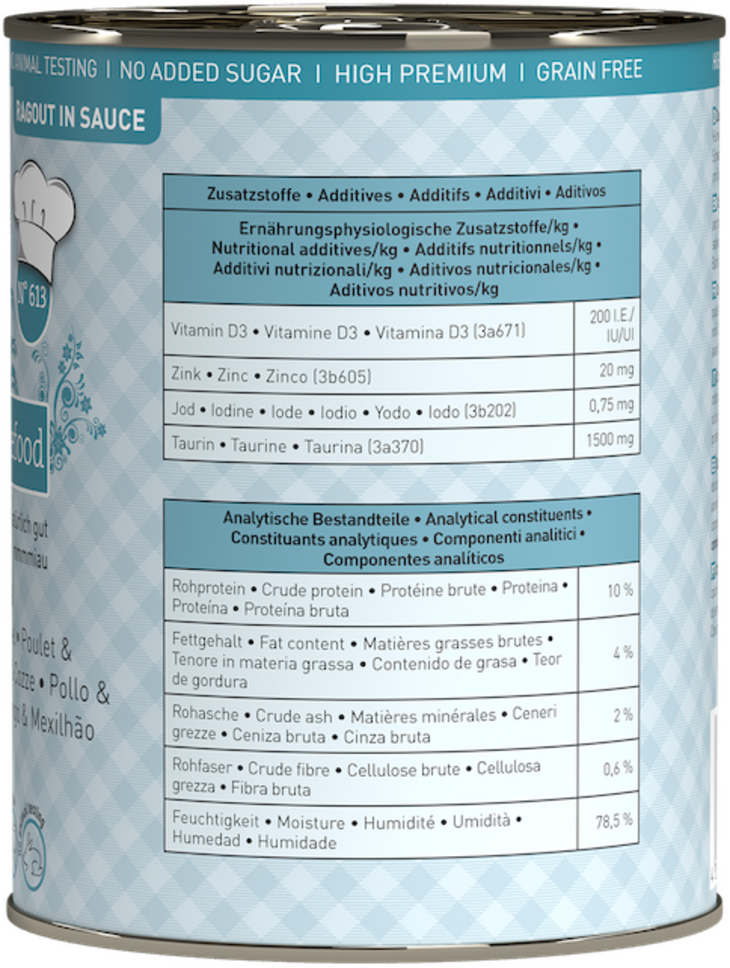 Mačja hrana Ragout No. 613 - piščanec in školjke