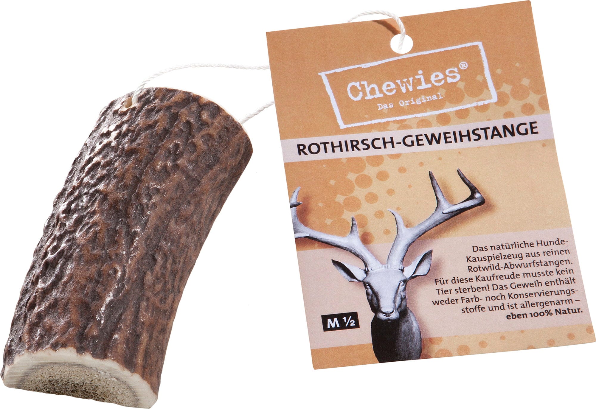 S tem naravnim premium prigrizkom znamke Chewies poskrbite za dolgotrajno in vrsti primerno zaposlitev vašega psa. Neobdelano jelenovo rogovje je obdano s trdo snovjo in privablja z neustavljivim mozgom v rogovju. Vašega psa čaka dolgotrajen užitek pri žvečenju!