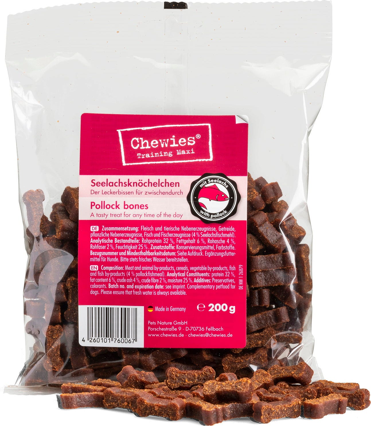 Z maxi priboljški znamke Chewies bo vaš pes v trenutku osvojil vsak trening! Odlični prigrizki v obliki kosti so popolne velikosti in s svojo okusno vsebnostjo mesno podpirajo vsak podvig!