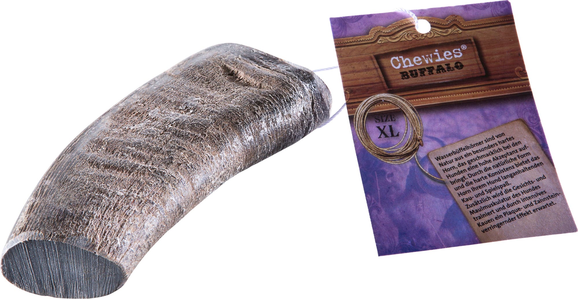 Žvečilni bivolji rog XL znamke Chewies izvira od vodnega bivola in ima posebej privlačen, eksotičen, celo prvobiten okus. Robusten rog ni le vrsti primerna zaposlitev, temveč spodbuja tudi igralni nagon vašega psa in zagotavlja ure okusne zabave.