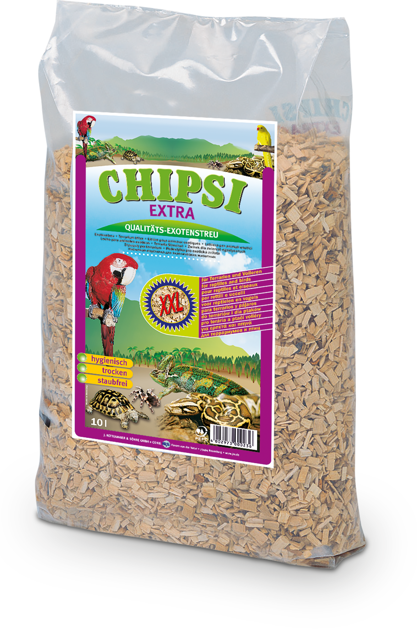 Stelja je bila razvita ob upoštevanju specifičnih potreb različnih vrst: Izdelek brez prahu ščiti občutljive dihalne sisteme mnogih živali, hkrati pa ohranja okolje suho in zagotavlja naravno, higiensko bivalno okolje. Vašemu ljubljenčku je zagotovljeno udobno s CHIPSI EXTRA XXL: mešanica granul različnih velikosti ustvarja prijeten občutek in je nežna do vseh vrst blazinic tačk.