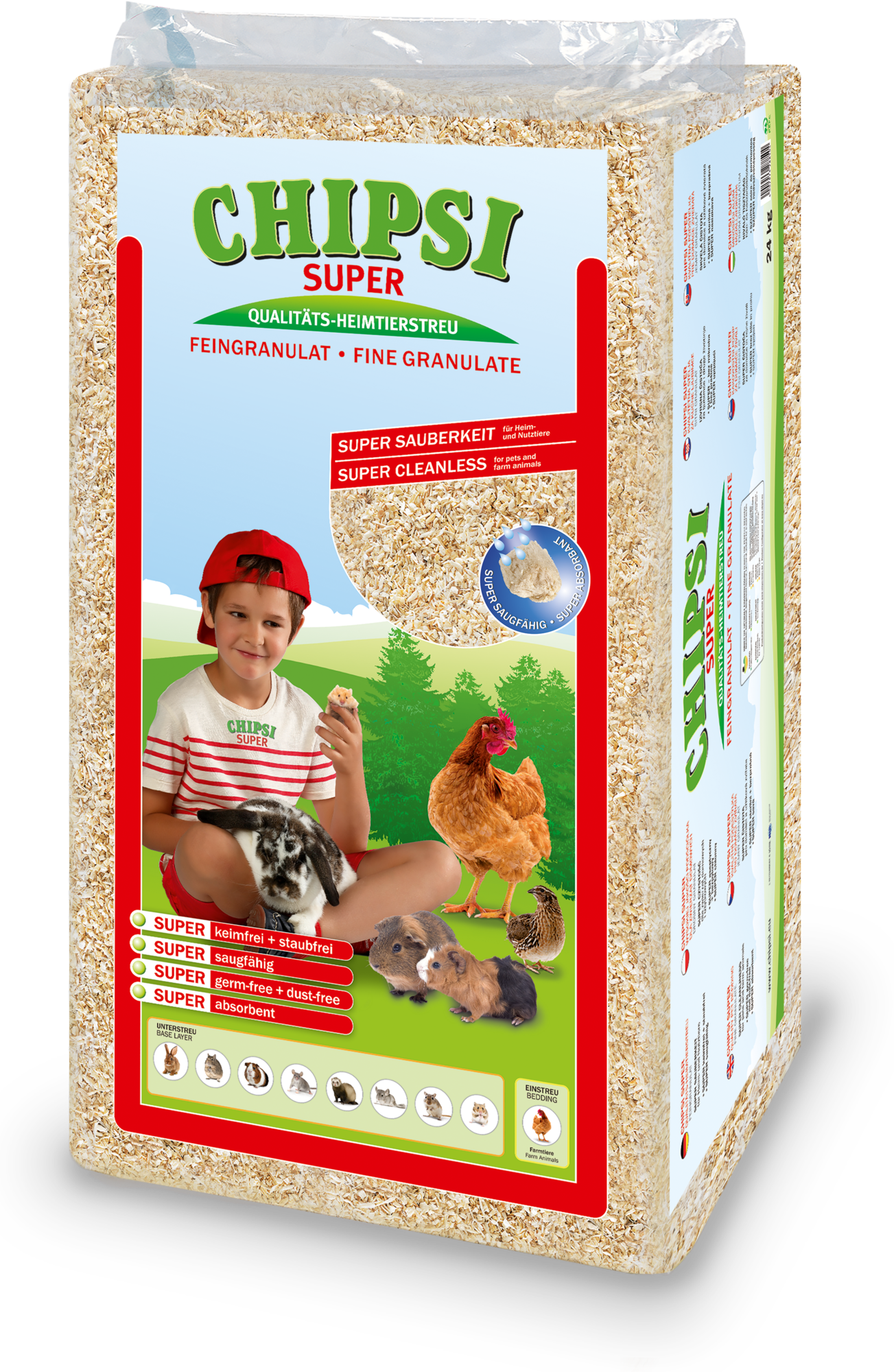 Ali vaš ljubljenček ne prenaša vseh vrst stelje? CHIPSI SUPER je morda popoln izdelek za vas: Sestavljen je iz fino granuliranih rastlinskih vlaken (mehki les), je nevtralen glede prahu in bakterij - idealen za živali z alergijami, nepojasnjeno občutljivostjo in zdravstvenimi težavami. Izdelek so testirale in priporočile vodilne veterinarske klinike.