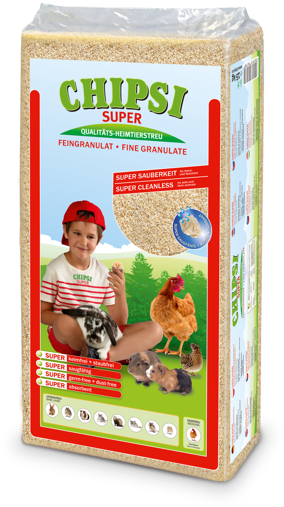 Ali vaš ljubljenček ne prenaša vseh vrst stelje? CHIPSI SUPER je morda popoln izdelek za vas: Sestavljen je iz fino granuliranih rastlinskih vlaken (mehki les), je nevtralen glede prahu in bakterij - idealen za živali z alergijami, nepojasnjeno občutljivostjo in zdravstvenimi težavami. Izdelek so testirale in priporočile vodilne veterinarske klinike.