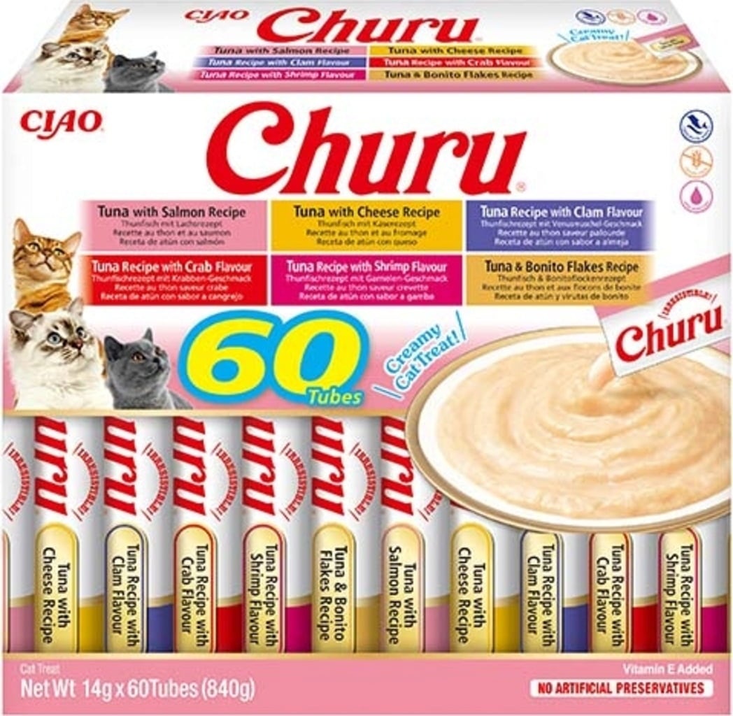 Churu Kremni mačji prigrizek - Box, 60 x 14 g, Različice tune (840 g)