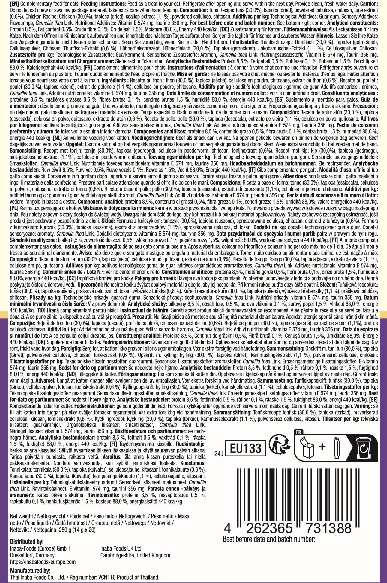 Ta neustavljiva poslastica bo navdušila tudi najbolj razvajene mačke. Skrbno izbrane sestavine in receptura, prilagojena naravnim potrebam mačk, jo naredijo zares poseben priboljšek, s katerim lahko svojo mačko znova in znova razvajate.