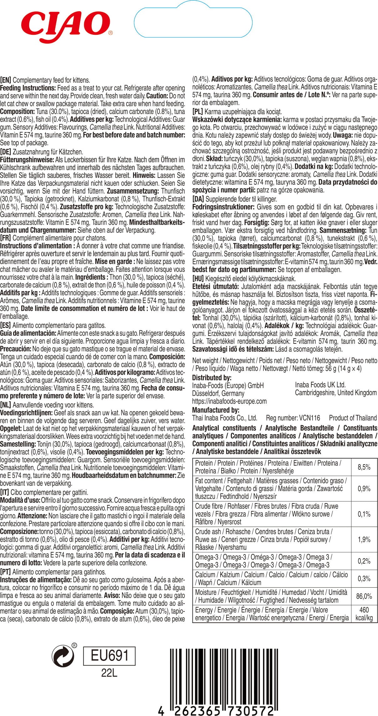 Izkušnenj v jeziku slovenščina za izdelek Churu Kremni mačji prigrizek - Kitten, 4 x 14 g