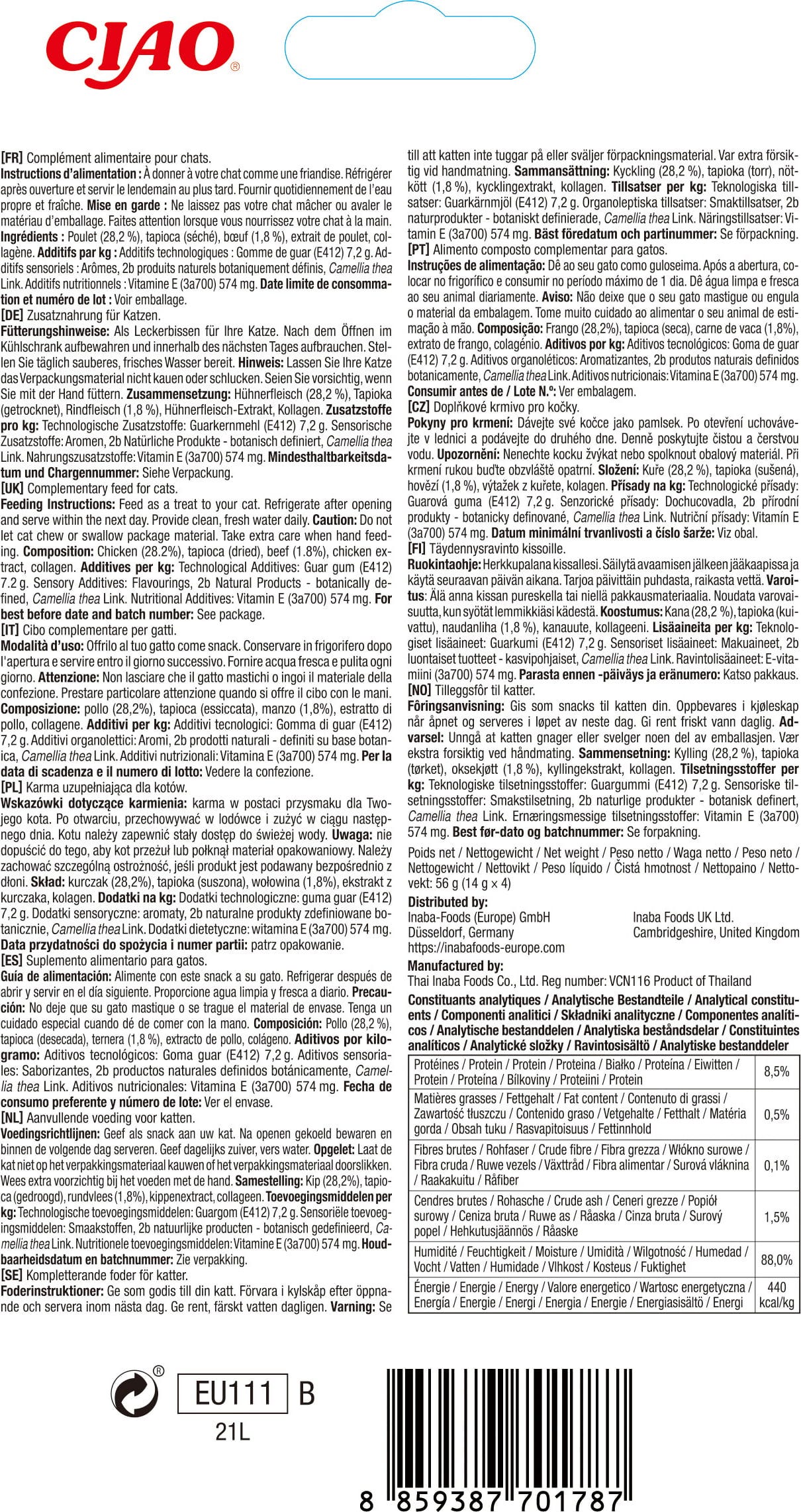 Izkušnenj v jeziku slovenščina za izdelek Churu Kremni mačji prigrizek - piščanec, 4 x 14 g