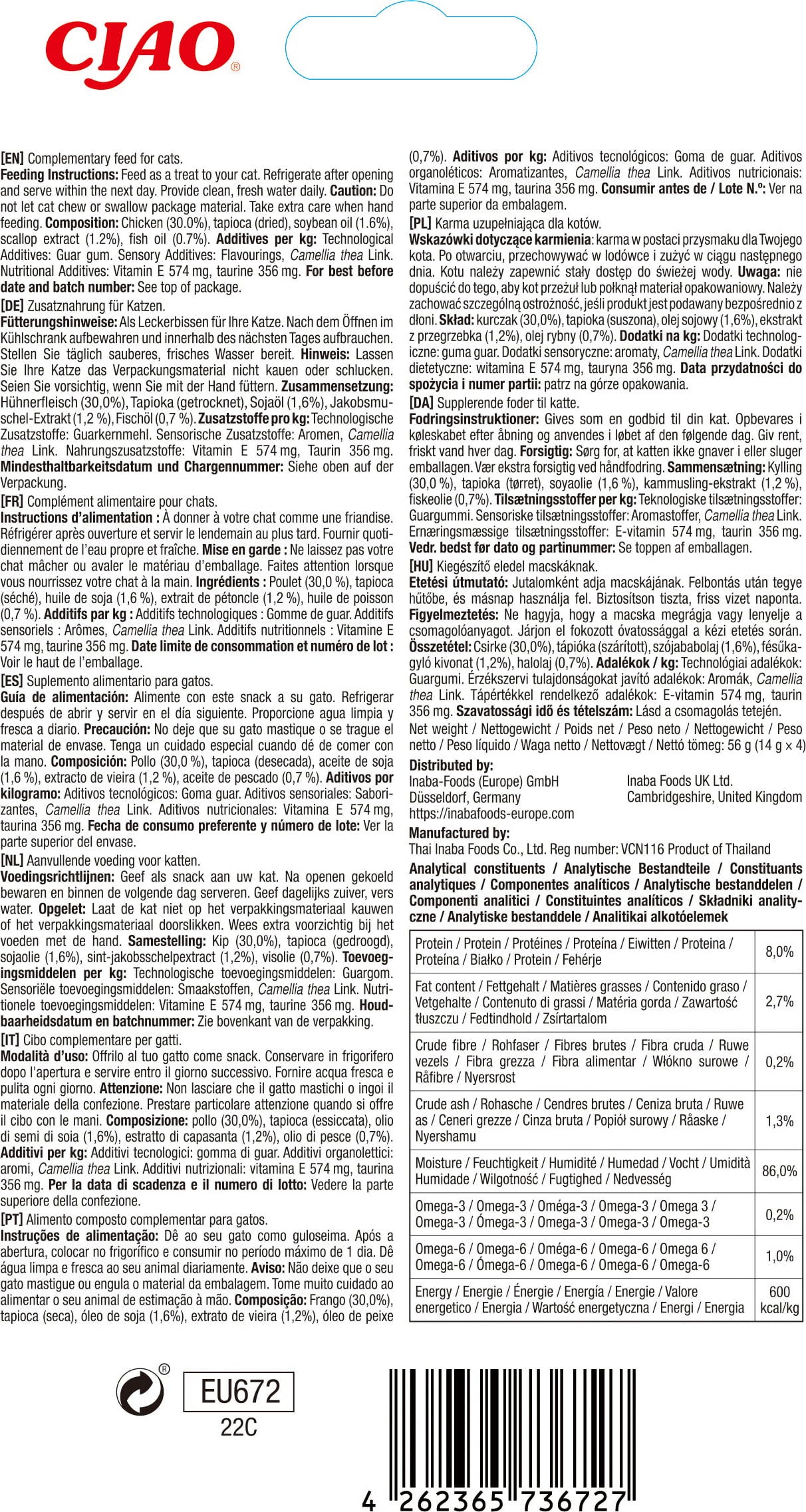 Izkušnenj v jeziku slovenščina za izdelek Churu Kremni mačji prigrizek - Skin&Coat, 4 x 14 g