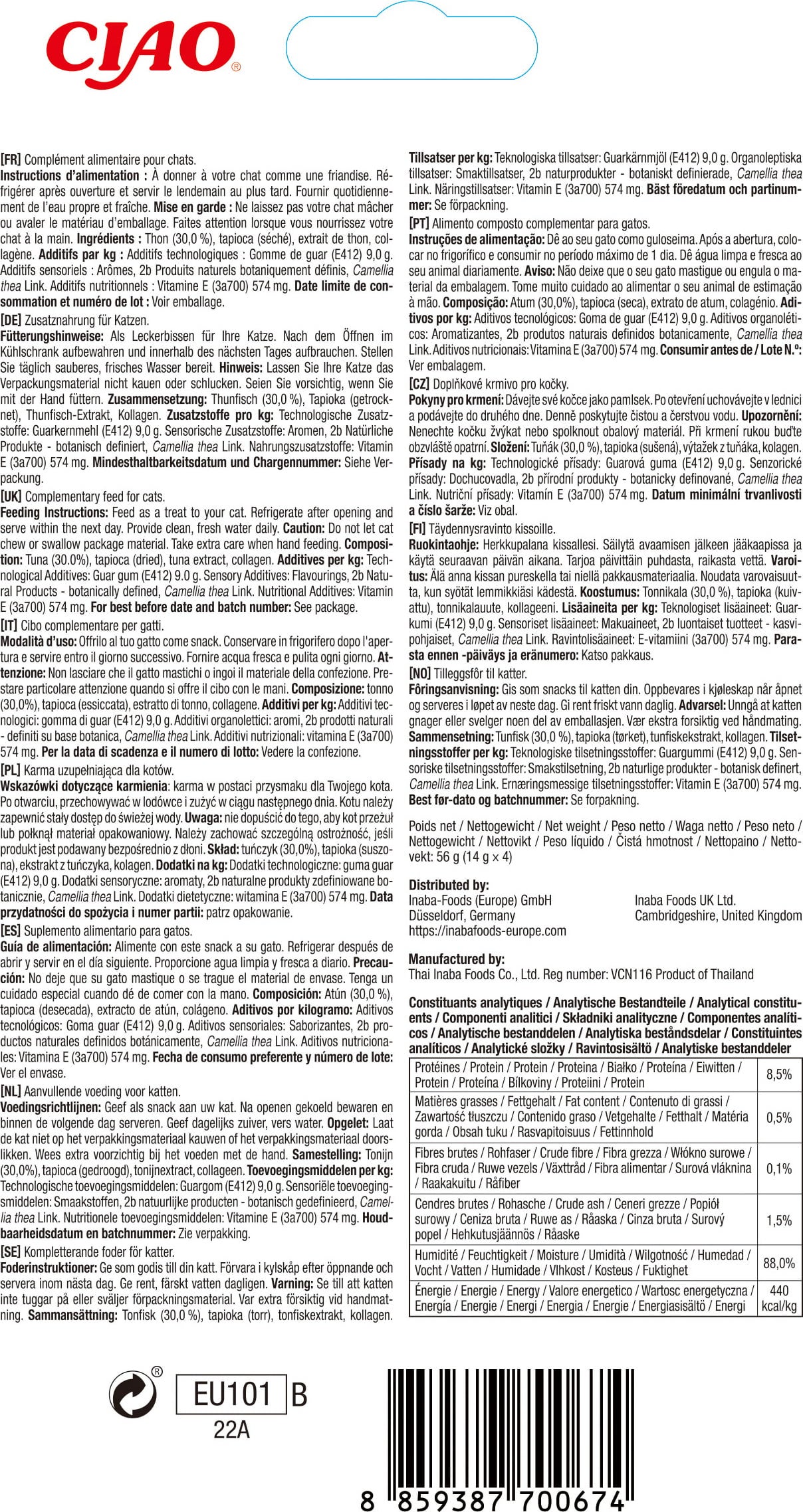 Izkušnenj v jeziku slovenščina za izdelek Churu Kremni mačji prigrizek - tuna, 4 x 14 g