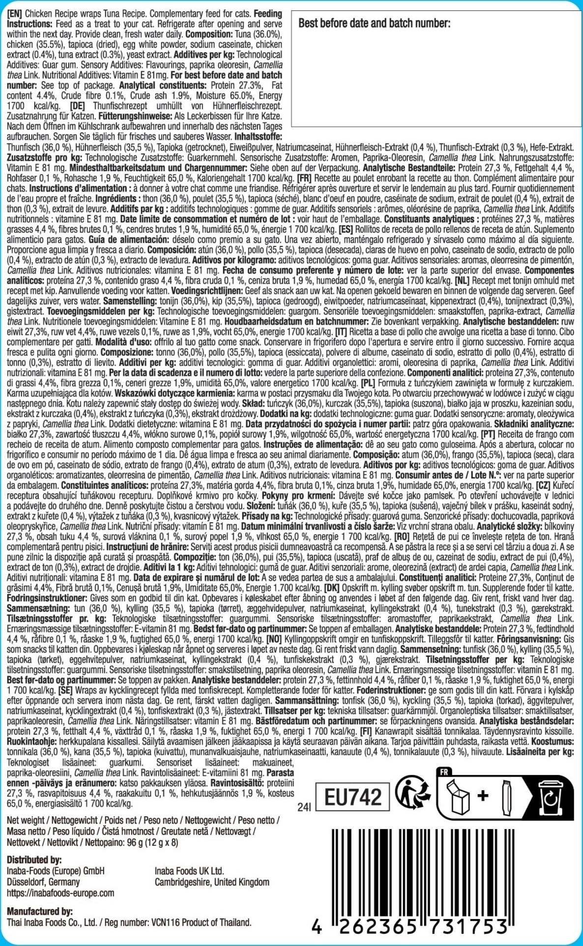 - Narejeno iz tune iz odgovornega ribolova in piščanca iz vrstno ustrezne reje