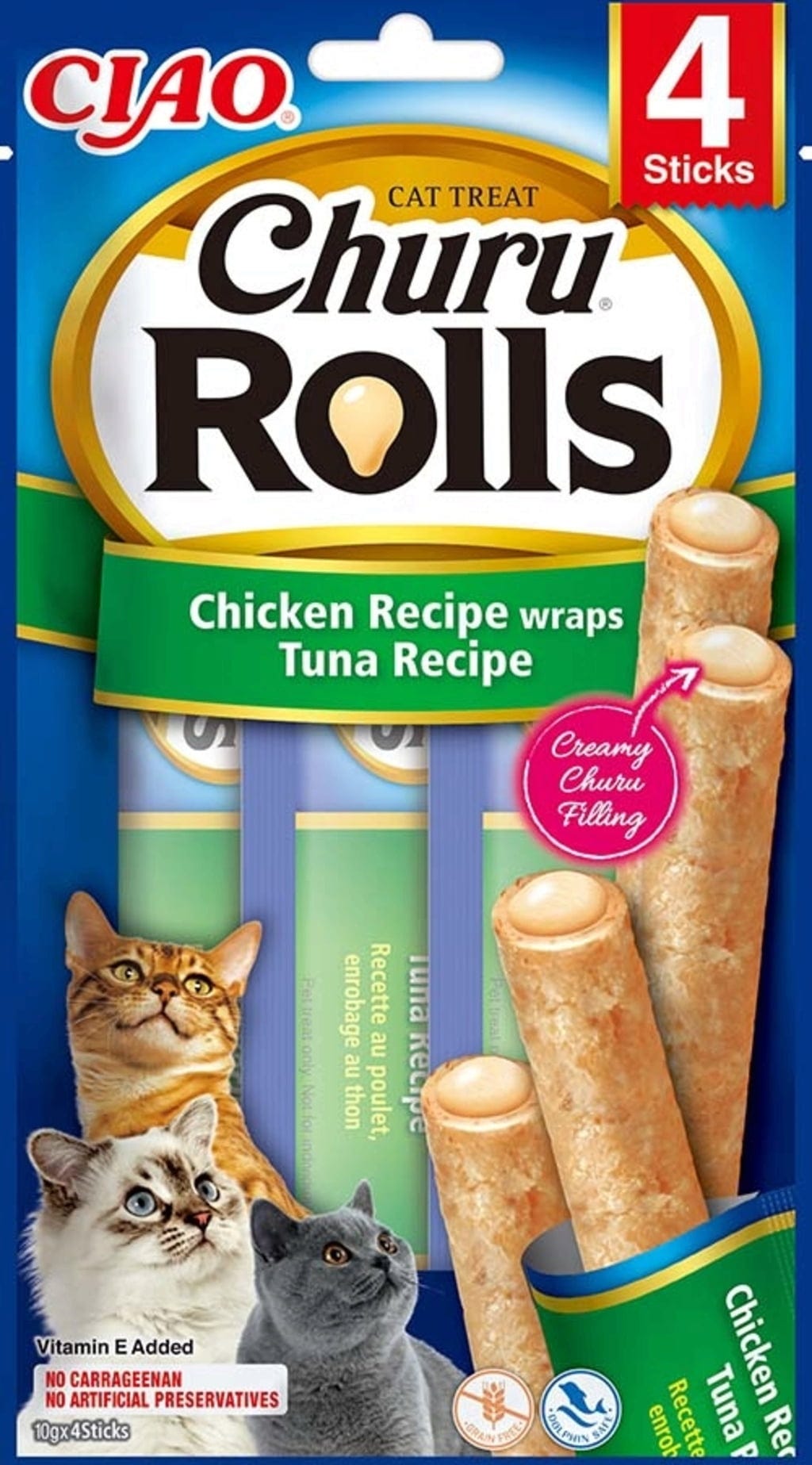 Churu Mačji priboljški Rolls, 4 x 10 g, Piščančji zavitki s tuno (40 g)