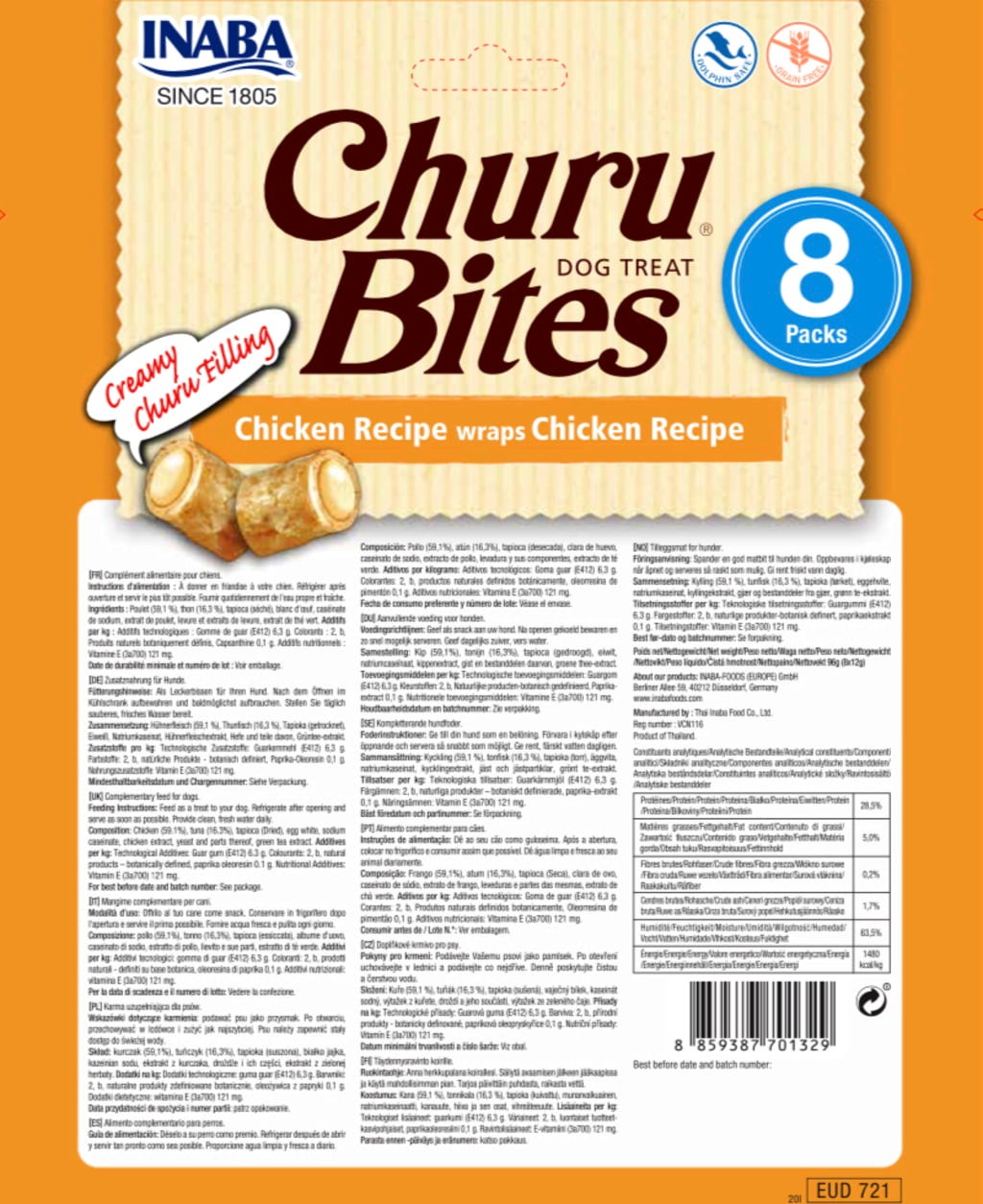 Churu Pasji priboljški Bites, 8 x 20 g, Piščančji zavitki (96 g)