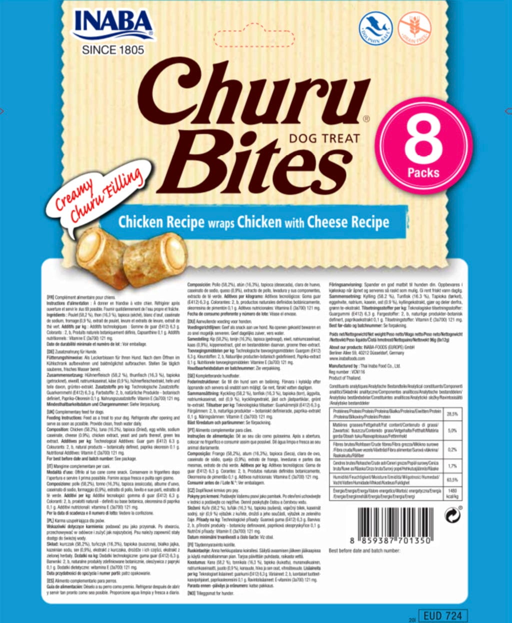 Mehki na zunaj in kremasti na notranjosti - to so neustavljivi Bites znamke Churu. Za vašega psa so prava poslastica, saj navdušujejo ne le s svojima teksturama, temveč tudi z izbranimi sestavinami in recepturo, primerno vrsti. In ker imajo še posebej malo kalorij, psom lahko občasno privoščite še kakšen dodaten okusen priboljšek.