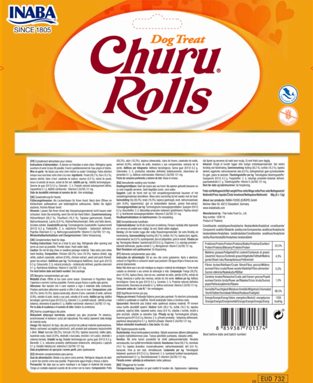 Izkušnenj v jeziku slovenščina za izdelek Churu Pasji priboljški Rolls, 8 x 12 g