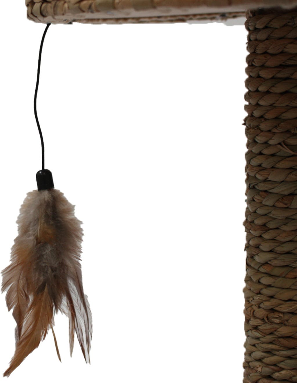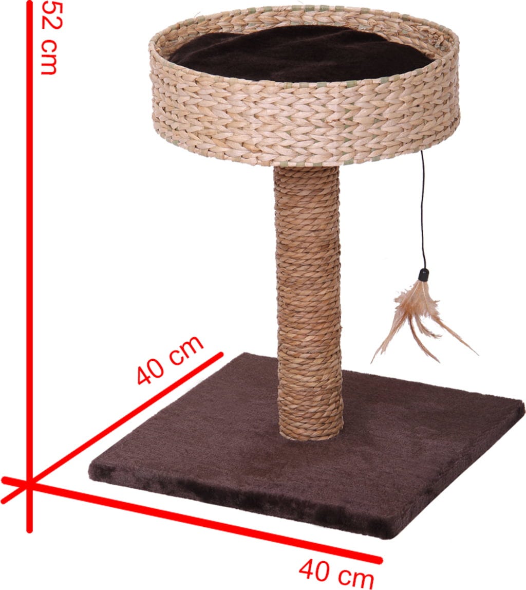 Steber je ovit z robustno vrvjo iz sisala, dobro vzdrži ostre kremplje in ga je mogoče zamenjati. Košarica je izdelana iz vodne hijacinte in je opremljena z natančno prilegajočo se blazinico iz pliša. Izjemno mehak material izžareva nekaj luksuza, ki ga bo vaša mačka zelo cenila. Po potrebi ga je mogoče oprati.