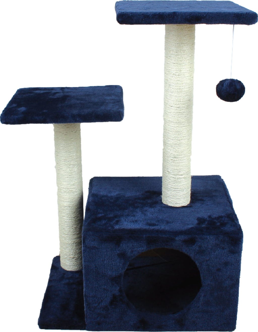 Spanje, praskanje, igra in sprostitev na najmanjšem možnem prostoru! Ta prostorsko varčen in stabilen plezalni praskalnik ponuja popoln program: udobna posteljica v kocki, ki je v celoti prevlečena s plišem, je odličen kotiček za umik ob vsakem času dneva in noči. Oba stebra, ovita z vrvjo iz sisala, nudita optimalen wellness: material je izjemno robusten in vzdrži vsak napad s kremplji – idealno za nego krempljev in sprostitev! Dve etažni platformi spodbujata k plezanju in skakanju; plišasta žogica zapeljivo binglja in prebuja naravni nagon po igri in lovu.