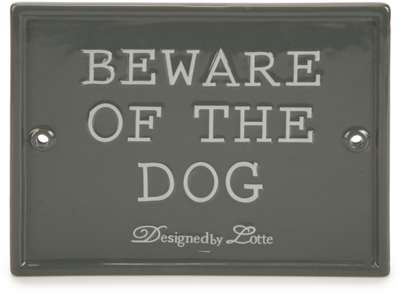 Designed by Lotte Keramična tablica "Beware of the Dog", siva