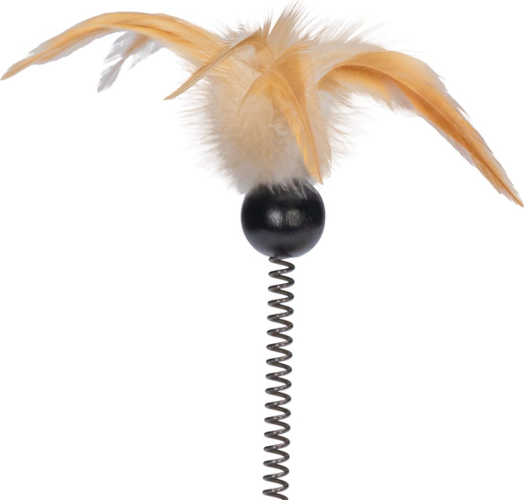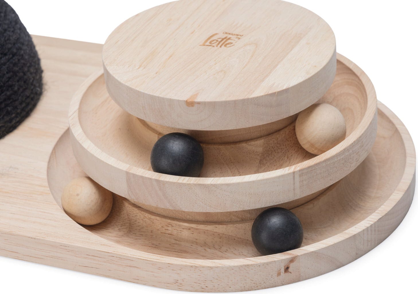 Iščete več pestrosti in vrsti primerno zaposlitev za svojo mačko? Potem je ta stilski praskalnik in igralni stolp ravno pravšnji za vas! Na eni strani vašega hišnega ljubljenčka čaka igralni stolp z dvema nadstropjema, na katerih se zabavno premikajo lesene kroglice. Na drugi strani pa sisalova krogla, ovita z robustno juto, nudi odlično možnost za praskanje. Nihajoče pero z žogico in zvončkom poskrbi za dodatno zabavo pri igri in spodbuja naravni lovski nagon vaše mačke.