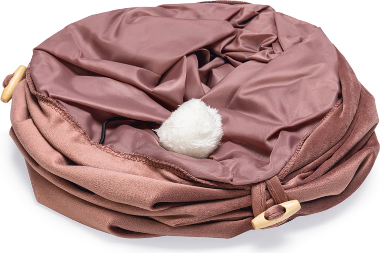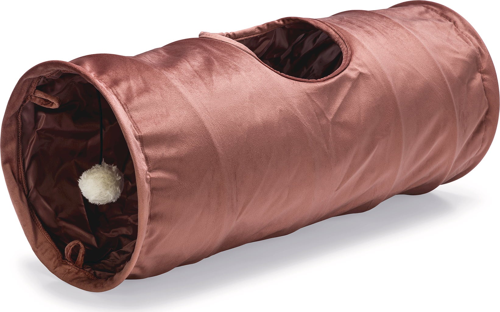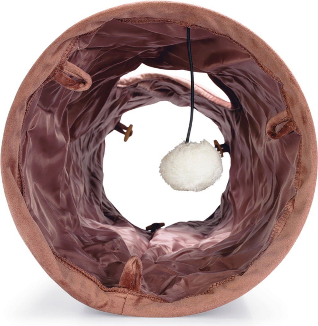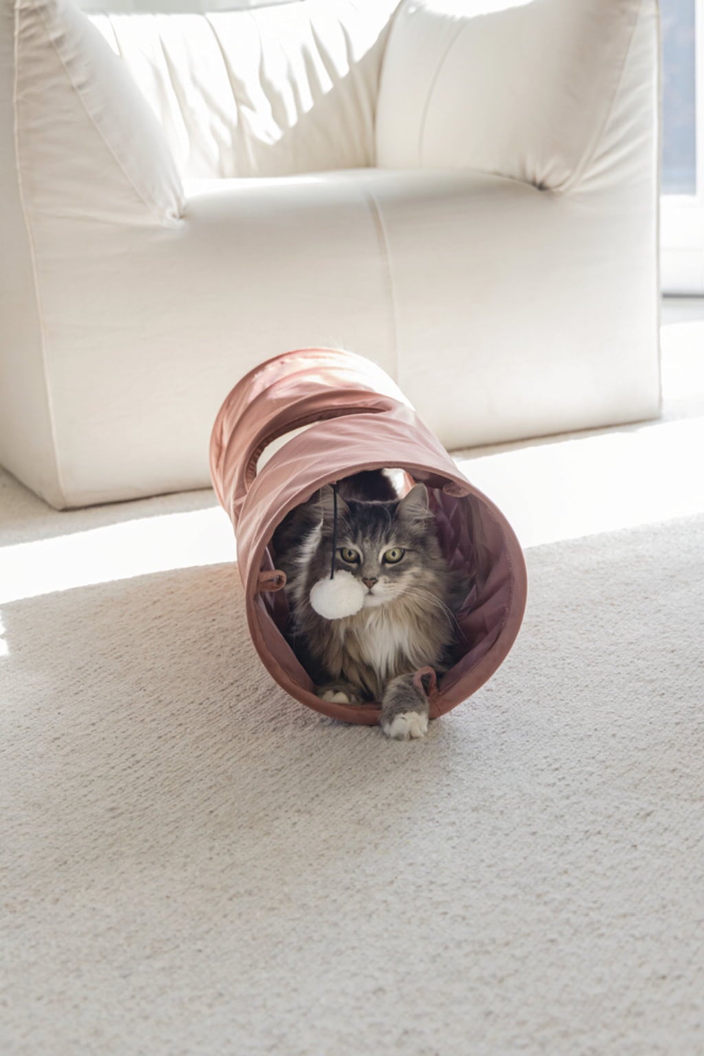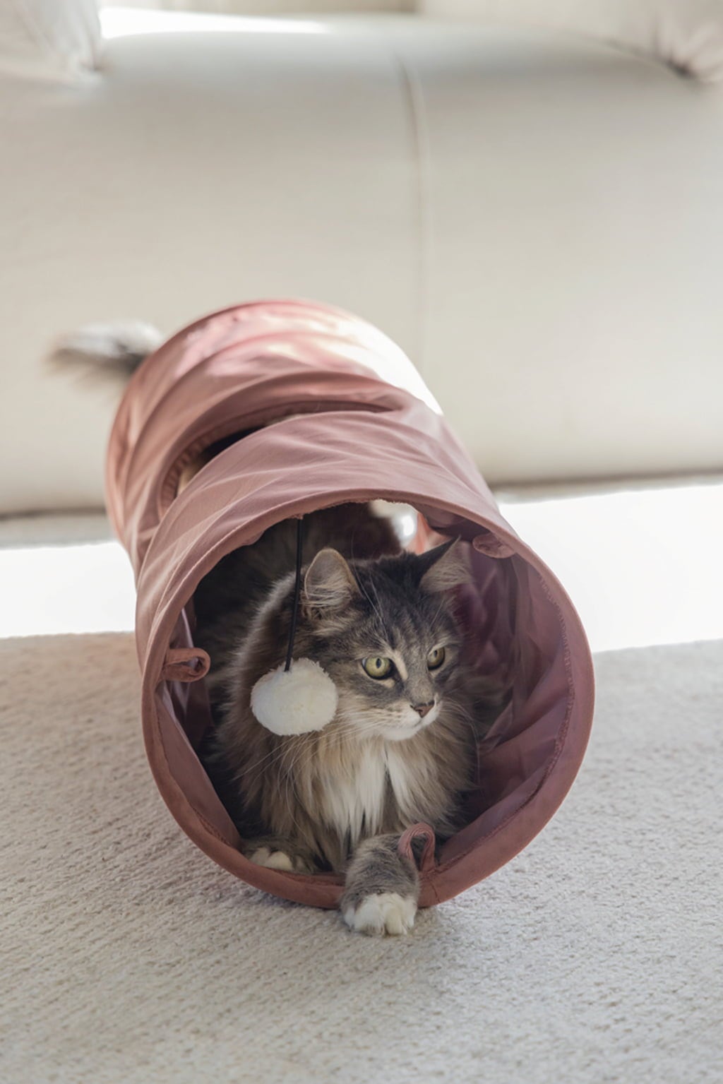 Ta tunel je dobrodošla sprememba v vsakdanjem življenju vaše mačke, saj jo vabi k umiku in počitku, ter je zaradi žogice, ki visi v njem, tudi razburljivo igrišče. Vaša mačka bo navdušena.