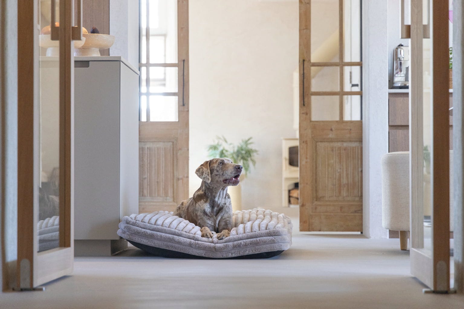Ta čudovita blazina v elegantni bež barvi ima vse, da postane novo najljubše mesto vašega psa. Ne navdušuje le s svojim videzom, temveč je tudi izjemno mehka in prijetno udobna. Popolna za počitek po dolgih sprehodih in drugih pasjih dogodivščinah.