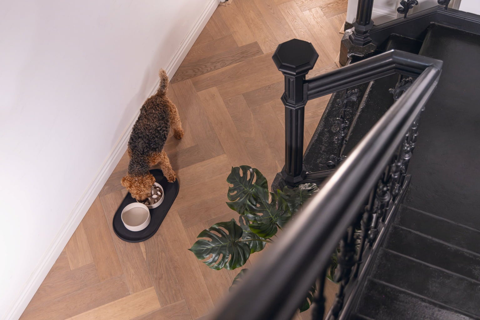 Ta elegantna silikonska podloga je videti elegantno in učinkovito ščiti tla pred razlito vodo in hrano ter posledičnimi madeži. Preprosto nanjopostavite sklede za hrano in vodo svojih štirinožnih prijateljev in vaša tla bodo ostala čista.