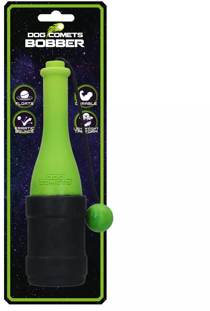Kam bo ta zabavna igrača odskočila? Z nepričakovanimi skoki igrača Bobber znamke Dog Comets zagotavlja ure raznolike zabave na kopnem. Prav tako je odlična izbira za vodo, saj plava skoraj pokonci. Naj se igra začne!