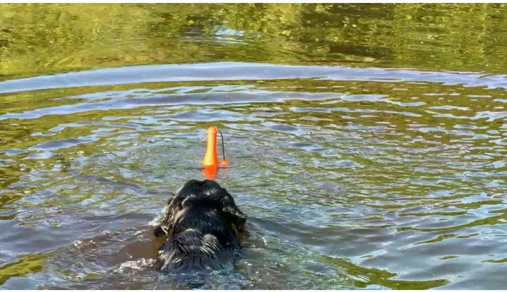 - Zabava na kopnem in v vodi - nepričakovano odskakuje in plava skoraj pokonci