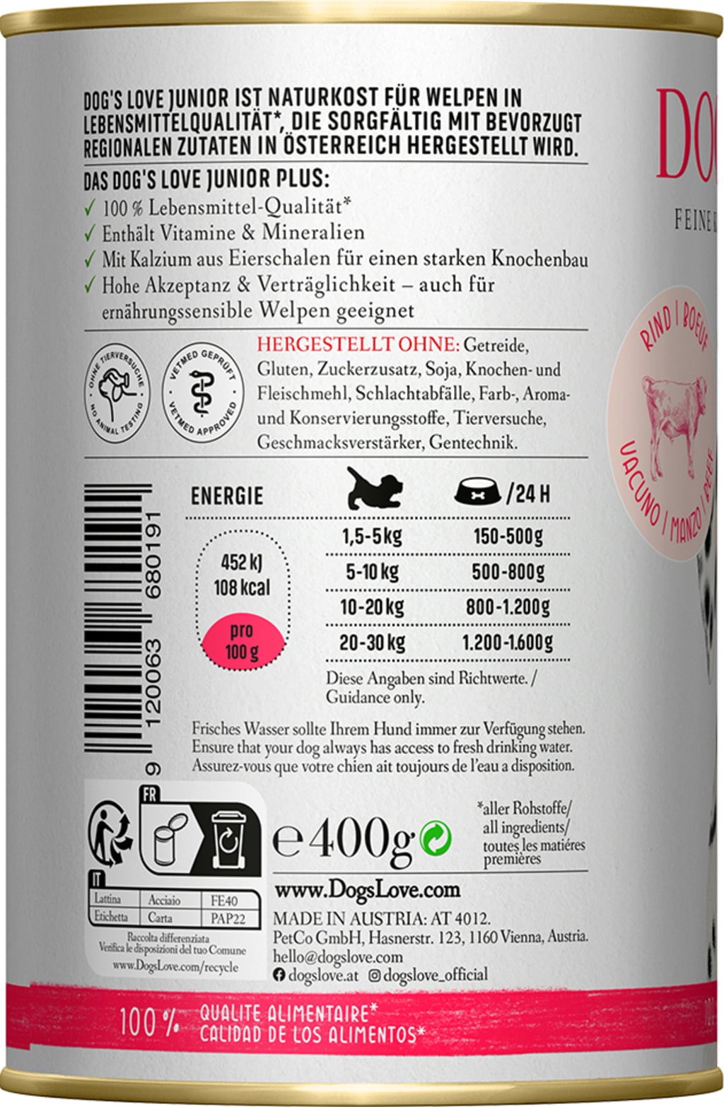 Izkušnenj v jeziku slovenščina za izdelek DOG'S LOVE Mokra pasja hrana JUNIOR - GOVEDINA